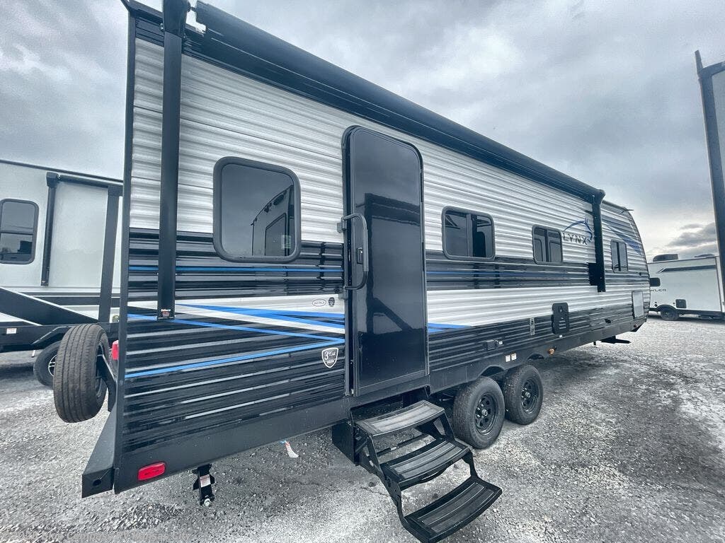 Get ready for comfortable and easy camping with the Prowler Lynx travel trailers by Heartland. Each model includes full bath and kitchen amenities, comfortable seating and sleeping spaces, and plenty of storage spaces that will help you keep camp gear and personal belongings clean and neat! The power awning with an LED light strip outdoors will provide shade when you need it, and the LED interior lights will keep your space well lit. These units also include USB ports to keep your electronics charge, a systems monitor panel, night shades in the living area and bedroom, plus many more conveniences to make life at the campground easier than ever!