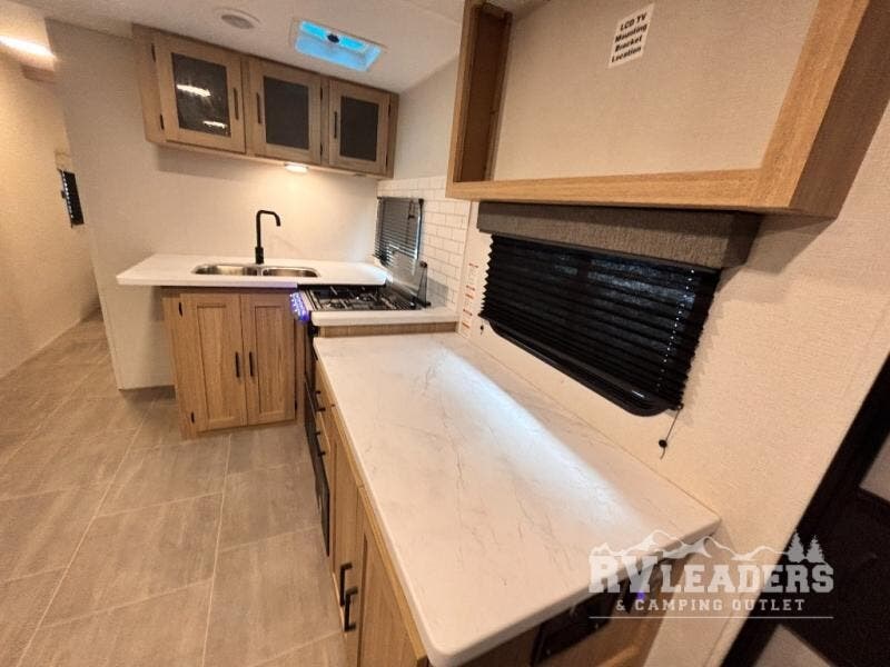 Get ready for comfortable and easy camping with the Prowler Lynx travel trailers by Heartland. Each model includes full bath and kitchen amenities, comfortable seating and sleeping spaces, and plenty of storage spaces that will help you keep camp gear and personal belongings clean and neat! The power awning with an LED light strip outdoors will provide shade when you need it, and the LED interior lights will keep your space well lit. These units also include USB ports to keep your electronics charge, a systems monitor panel, night shades in the living area and bedroom, plus many more conveniences to make life at the campground easier than ever!