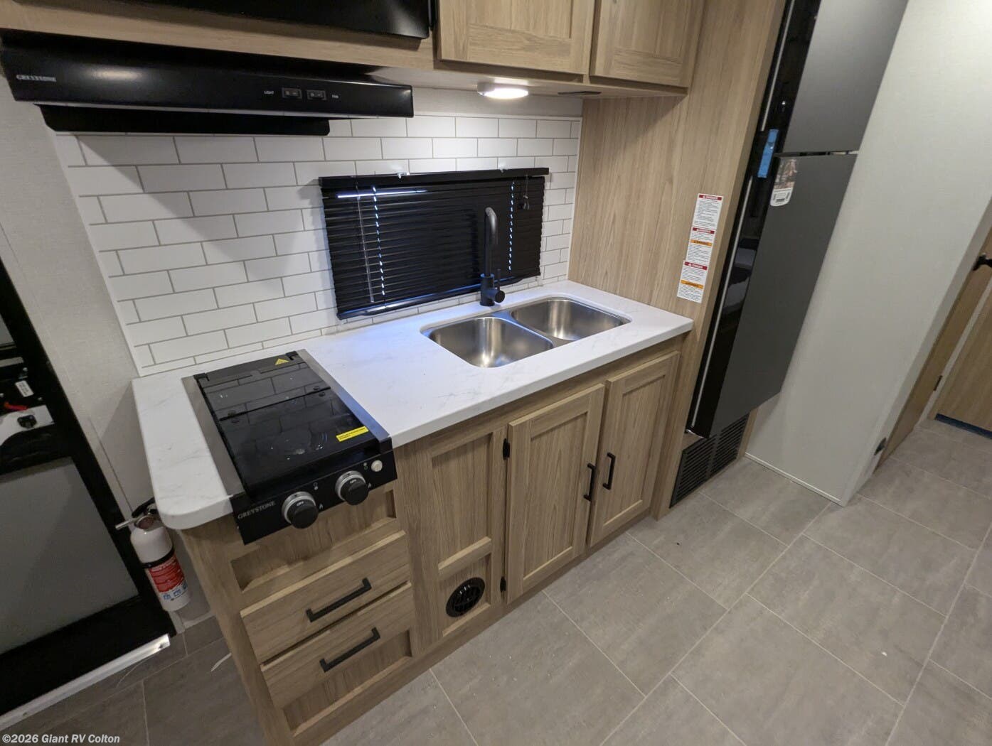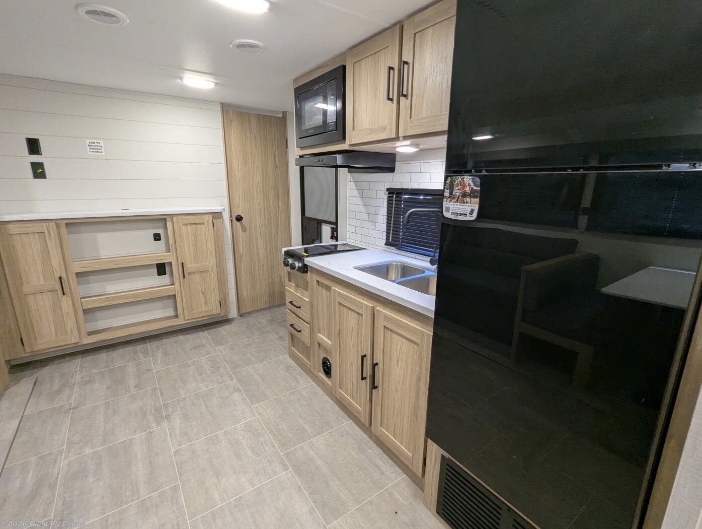 - Gourmet Kitchen: 12V fridge, stainless steel sink, microwave, 2-burner cooktop