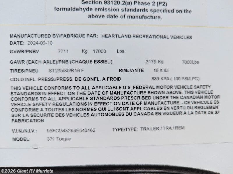 Request More Info on this 2025 Heartland Torque TQ 371 Offered for sale by Giant RV