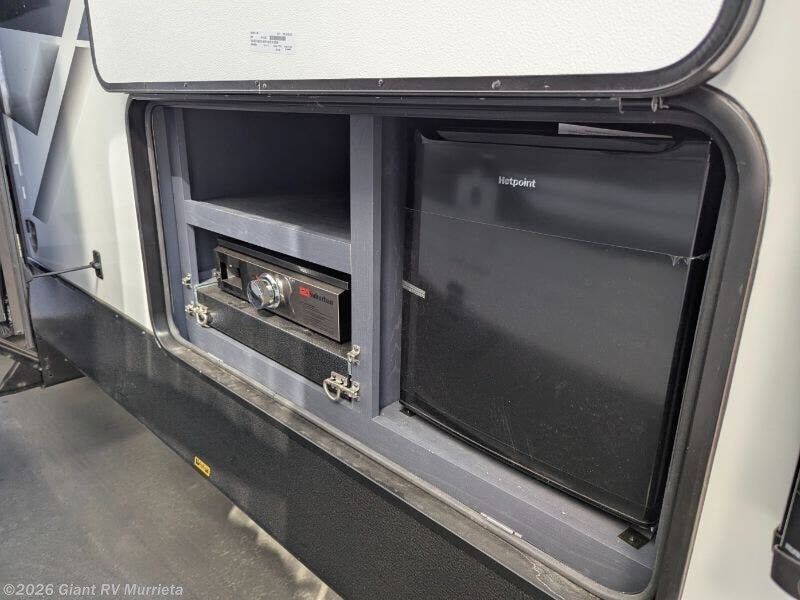 - Gourmet Kitchen: 12V fridge, 3-burner cooktop, outside griddle for travel trailer meals