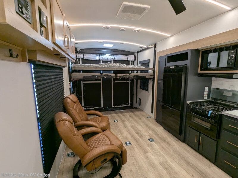 - Social Hub: Spacious living area with two recliners for RV adventure vibes