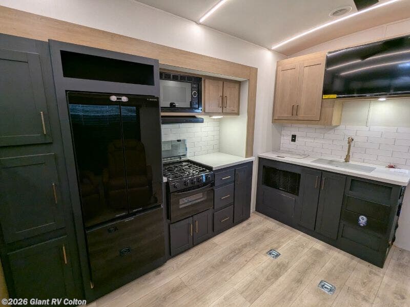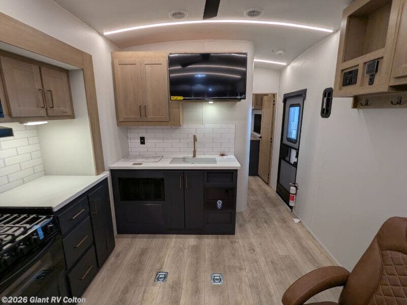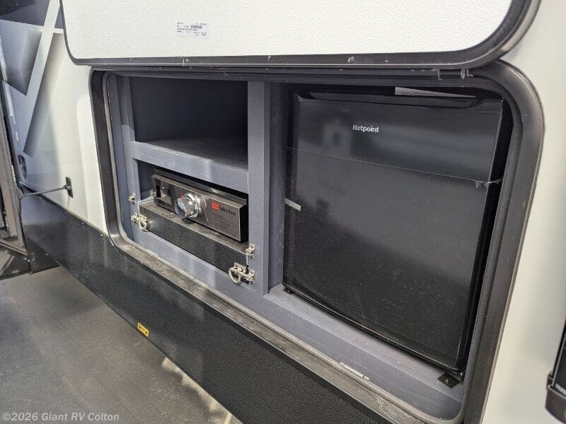 - Gourmet Kitchen: 12V fridge, 3-burner cooktop, outside griddle for travel trailer meals