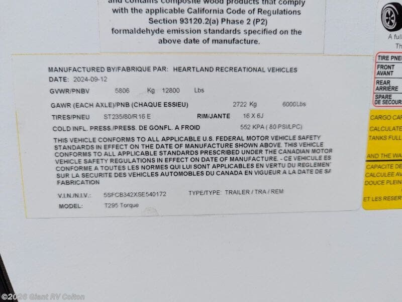 Request More Info on this 2025 Heartland Torque TQ T295 Offered for sale by Giant RV