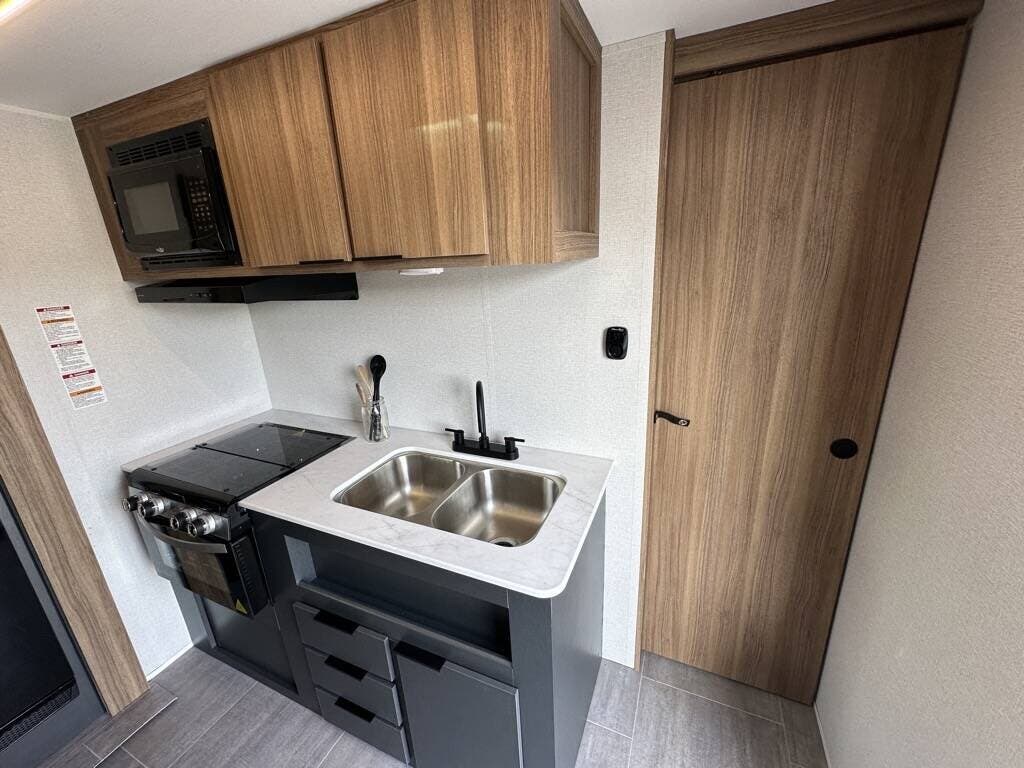 Enjoy your RV trips more than ever before in this 2025 Heartland Trail Runner 261BHS. Ready to be a proud Heartland owner? This 2025 Heartland Trail Runner 261BHS is the perfect fit. The sleep capacity allows you to bring up to 10 along on your travels in this rig. The one slide allows for easy setup and just enough extra space inside. Entertain or cook up a cozy meal just for you in this RV kitchen equipped with the fridge, oven, stove. Memories are made around the dinner table, and this booth dinette is where you’ll make them. You’ll wake up feeling well-rested for your adventures in your queen bed. Keep a comfortable temperature inside your rig with the heating option. If you’re thinking of heading off grid, this rig has a 41 fresh water tank. The exterior features make camping a breeze, such as awning, exterior speakers, external shower, ladder, leveling jacks, power roof vent, skylight and slideout. Wash up from your adventures with the outside shower.