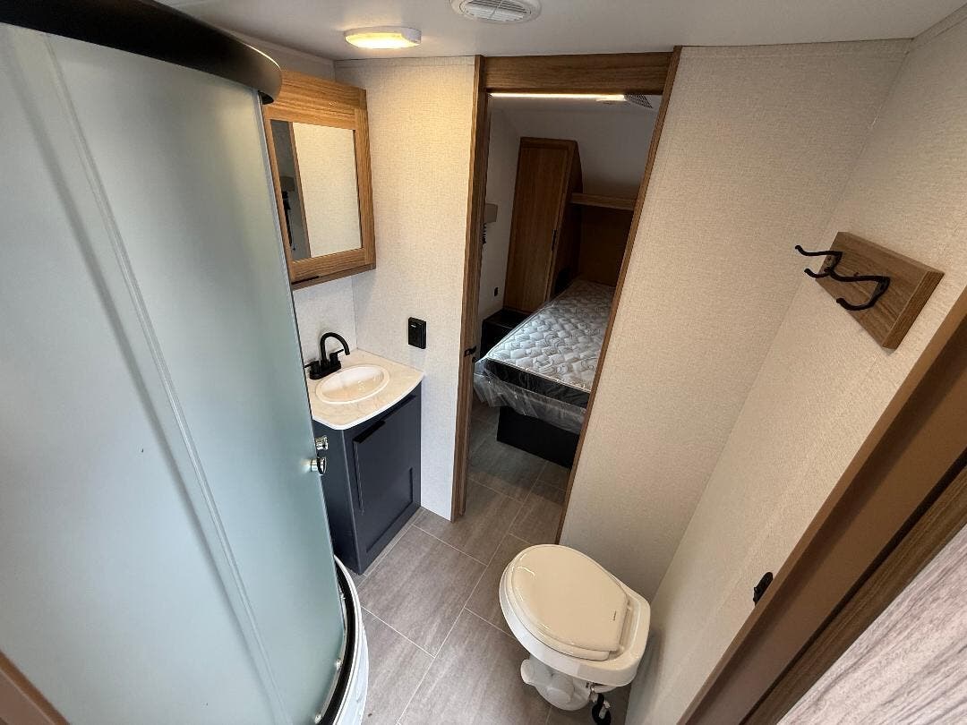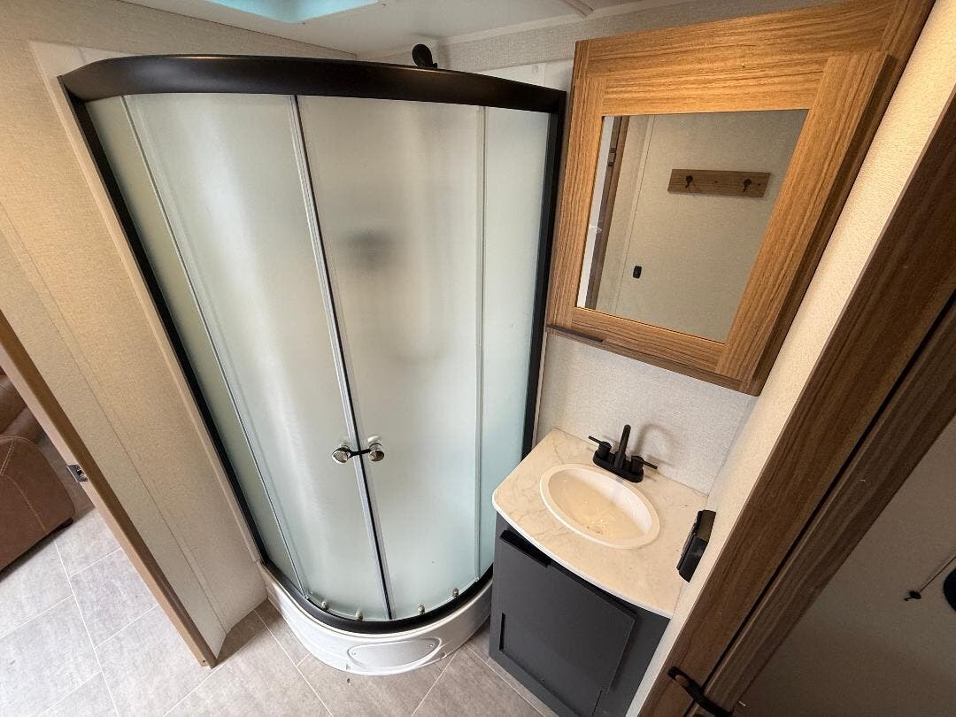 This 2025 Heartland Trail Runner 27RKS is jam-packed with features to make RVing better than ever. Ready to be a proud Heartland owner? This 2025 Heartland Trail Runner 27RKS is the perfect fit. This rig sleeps 6, so it makes the perfect family RV. The one slide allows for easy setup and just enough extra space inside. Cook up the best camping meals with appliances like the fridge, oven, stove. Memories are made around the dinner table, and this u-shaped dinette is where you’ll make them. Traveling couples love this rig thanks to the queen bed. You’ll never get too hot or too cold inside your rig thanks to the heating option. The 41 gallon fresh water tank is just right for easy RV traveling. While the inside of this rig is enough on its own, the outside also features awning, exterior speakers, external shower, ladder, leveling jacks, power roof vent, skylight and slideout. An outside shower makes it easier to keep your adventure rig clean.