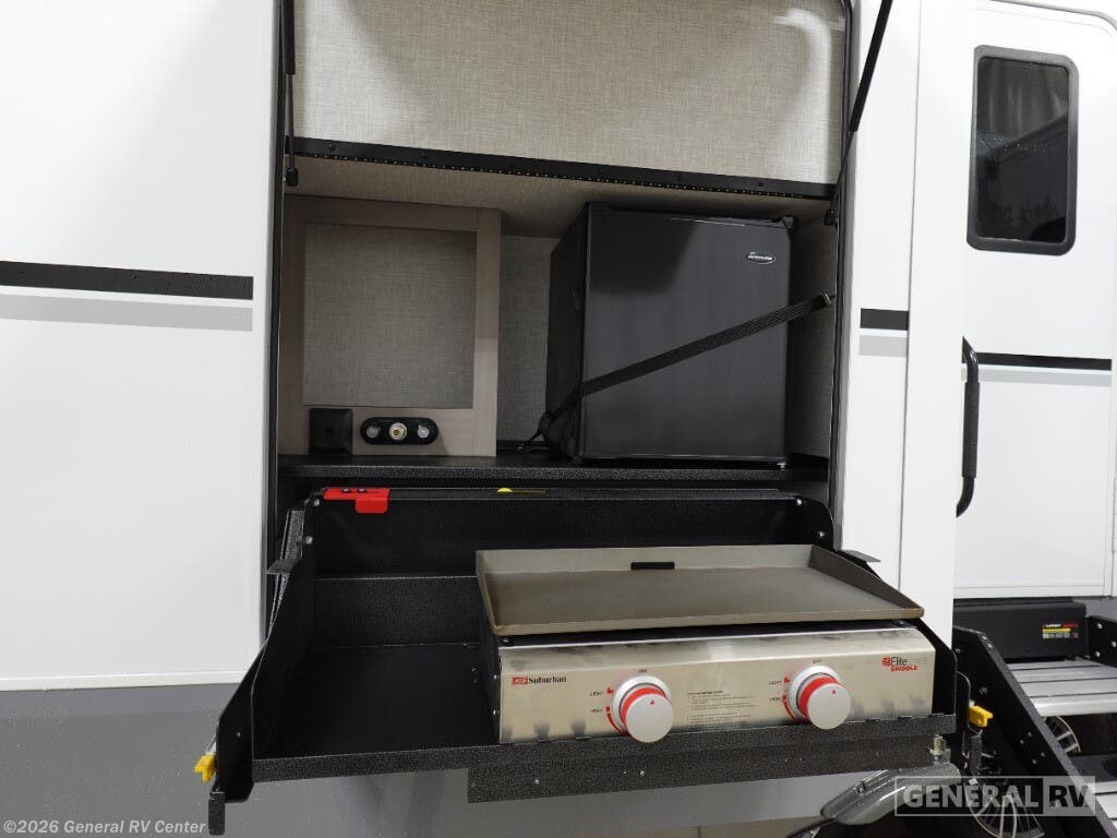 Step into the 2025 Highland Ridge Open Range 335RBS, a marvel of modern RV design that effortlessly combines luxury with functionality. This spacious travel trailer is perfect for families or groups, offering sleeping accommodations for up to nine people. With a variety of beds including a king, queen, double, and convertible options, everyone will find their perfect spot to rest. The front kitchen is a chef's dream, featuring a full-size electric refrigerator, ample counter space, and a three-burner cooktop, making meal preparation a breeze. Imagine enjoying delicious meals under the stars with the convenience of a pull-out griddle and two powered retractable awnings that provide the perfect outdoor dining setting. The heart of the Open Range 335RBS is its center living area, where comfort meets entertainment. A mega lounge and a 40-inch TV create a cozy space for movie nights or relaxing after a day of adventure. The rear bedroom, complete with a queen bed and ample storage, ensures a restful night's sleep. Practical features like a washer/dryer and an automatic heater make extended trips comfortable and convenient. With its thoughtful layout and superior amenities, the Open Range 335RBS is more than just an RV—it's your home away from home. For more details, visit your nearest General RV dealership and start your journey today!