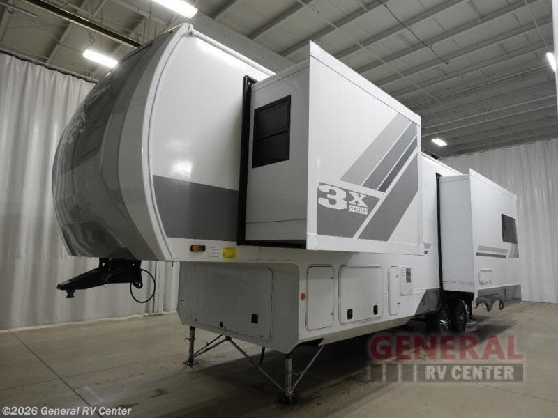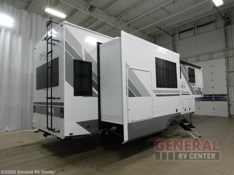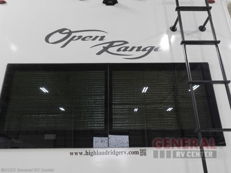 With any Open Range 3X fifth wheel by Highland Ridge, you will enjoy residential luxuries and an exceptional build. The TuffShell construction includes vacuum bonded laminated fiberglass and welded aluminum frames for added strength, and the PVC roofing membrane is ultra durable. You can plan to camp year around or go full-time since there is a mandatory Four Season Package that includes a heated and enclosed underbelly, a 40K BTU high-performance furnace, double insulated baggage doors, and more. The residential features continue on with the mandatory Executive Package with the TravelLINK Smart RV system, Keyed-Alike entry and baggage doors, painted fiberglass front cap with LED lighting, and three 15,000 BTU A/C units with quiet residential return air. Inside, you'll enjoy GE Profile kitchen appliances, sleek square windows with integrated blinds, ceramic subway tile backsplash, a glass shower door, and the list of amenities goes on!