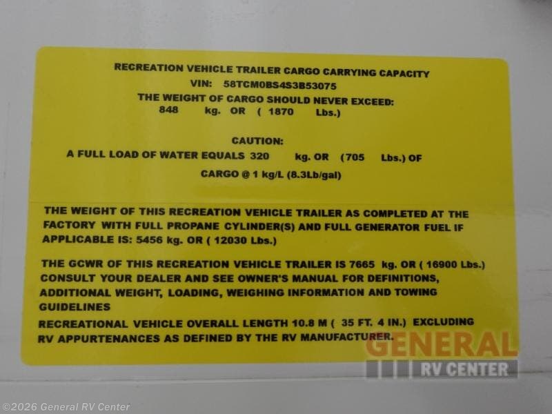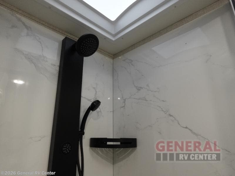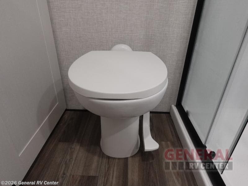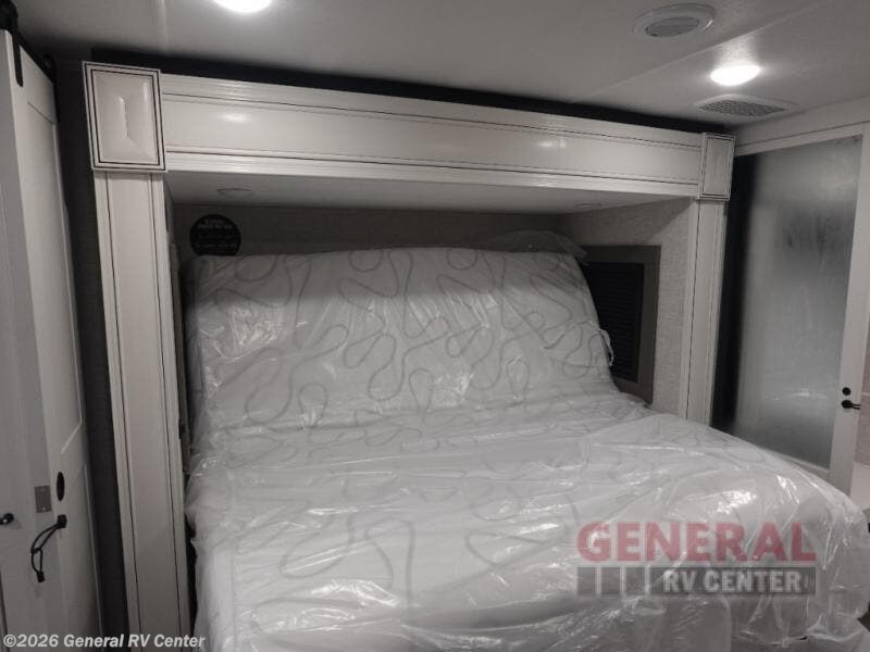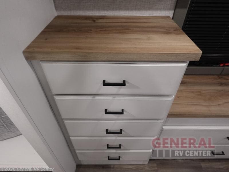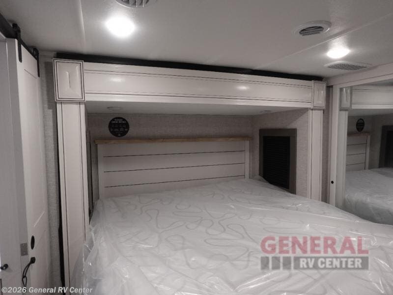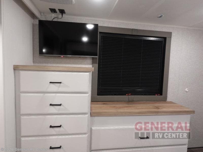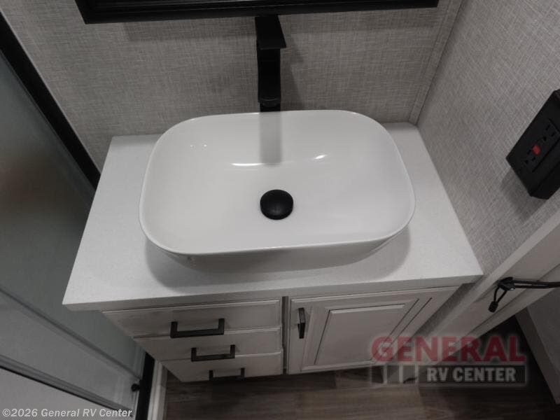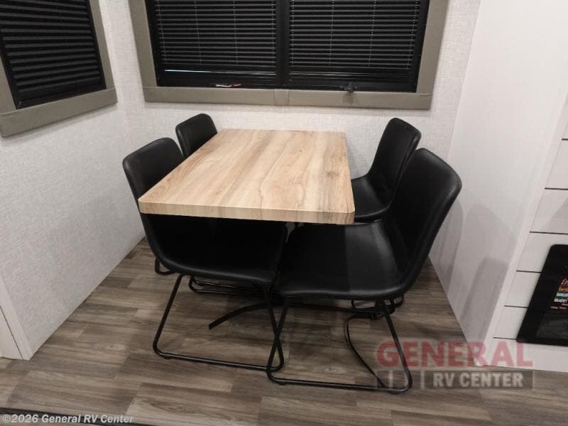 You will love the great space and layout in this amazing fifth wheel! The rear living area features theater seats as well as a tri-fold sofa with adjustable headrests. It's the perfect place to watch a movie on the 40" Smart TV located in the entertainment center with fireplace! The kitchen includes a full suite of GE residential appliances, including a 4-burner range, 21 cu. ft. refrigerator, and over-the range microwave. Also standard are a dishwasher and central vacuum system so cleaning up is easy! At night retire to the bedroom with its king bed with power base. A second TV lets you watch your favorite shows as you fall asleep. Storage abounds including a full wardrobe and dresser with pull-out top. A dual-entry full bath is easily accessible and includes even more storage with a linen closet!