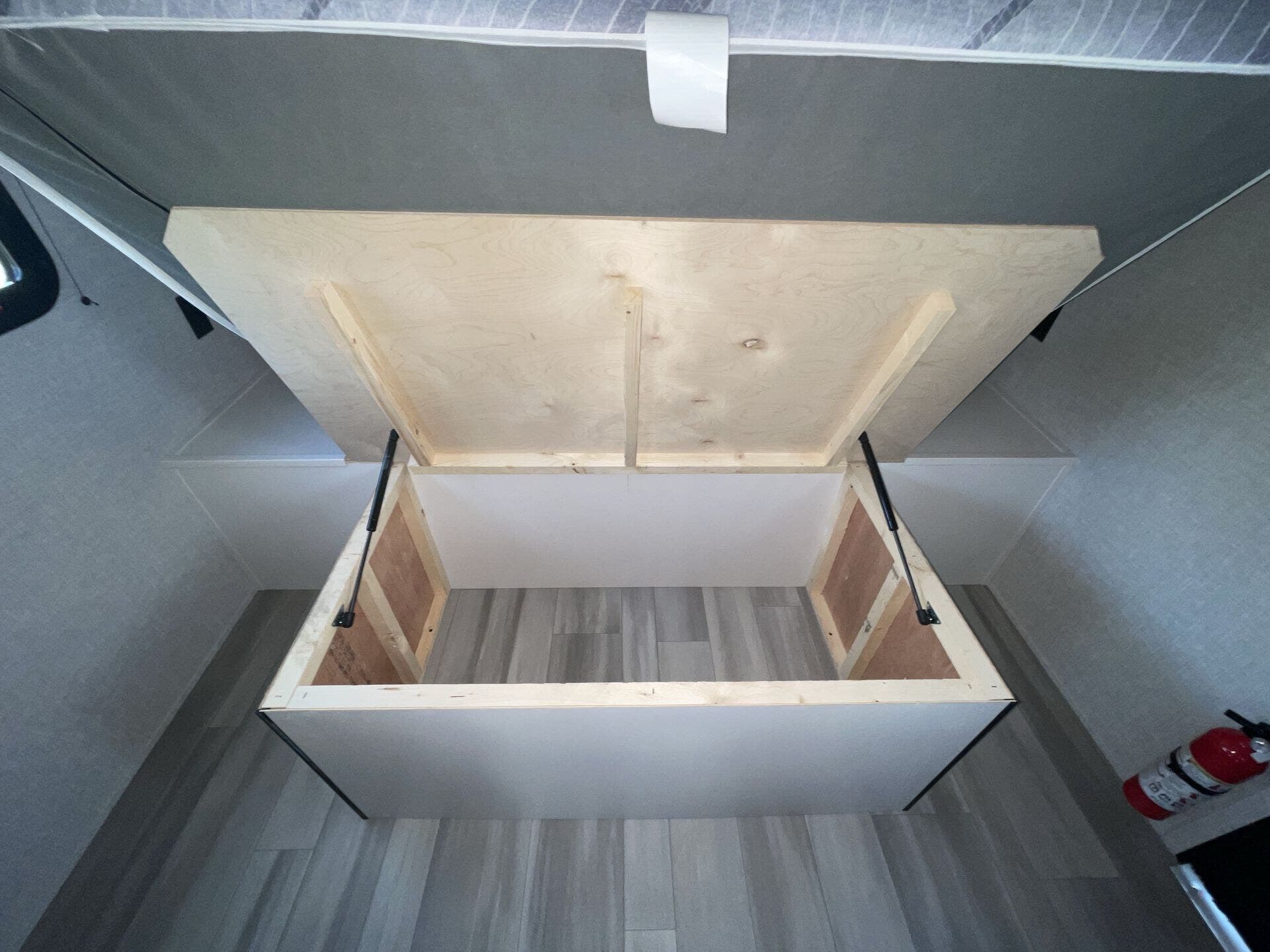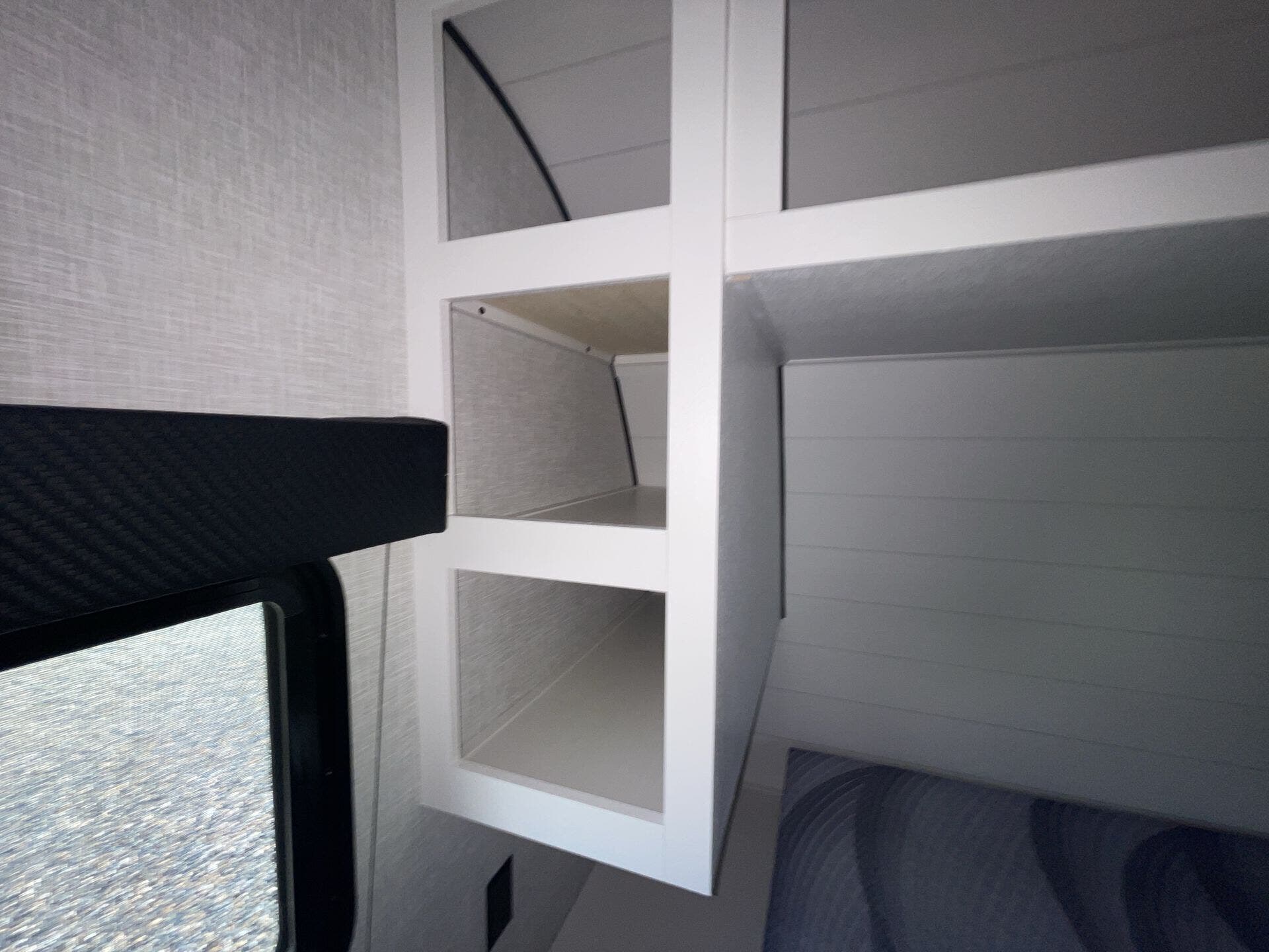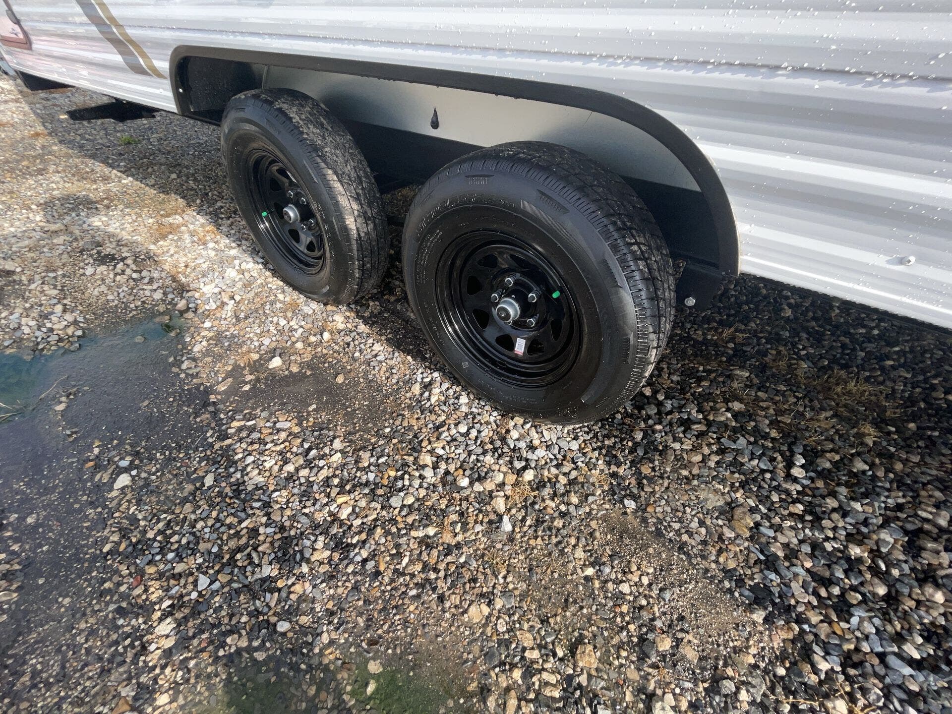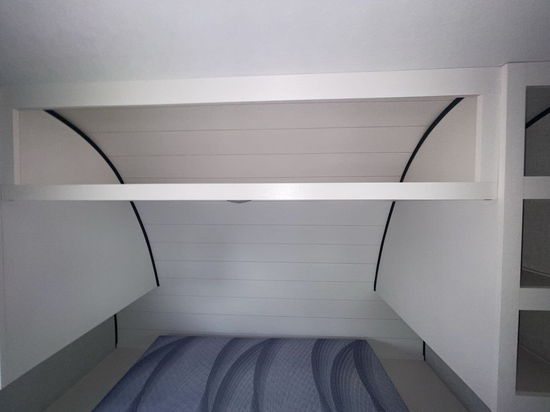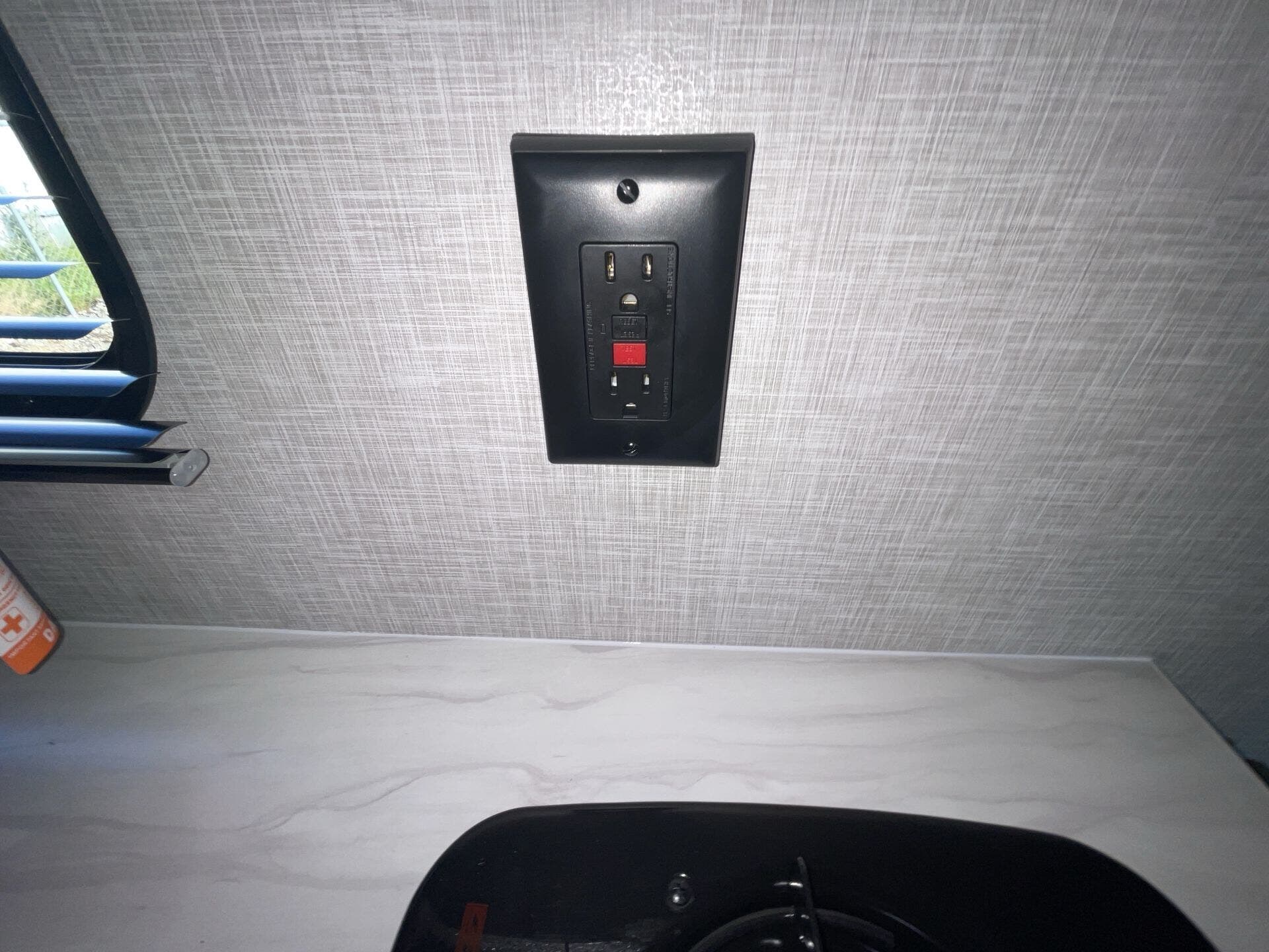 Inside, you’ll find thoughtful touches that make life on the road more enjoyable. The fully equipped kitchen includes a 10 cu. ft. refrigerator, a microwave, a two-burner cooktop, and ample counter space for meal prep. Residential vinyl flooring, LED lighting, and durable pressed membrane countertops add a modern, easy-to-clean feel, while plenty of storage compartments ensure that everyone’s gear has a place. Plus, the powerful A/C and furnace system keep you comfortable in all seasons.