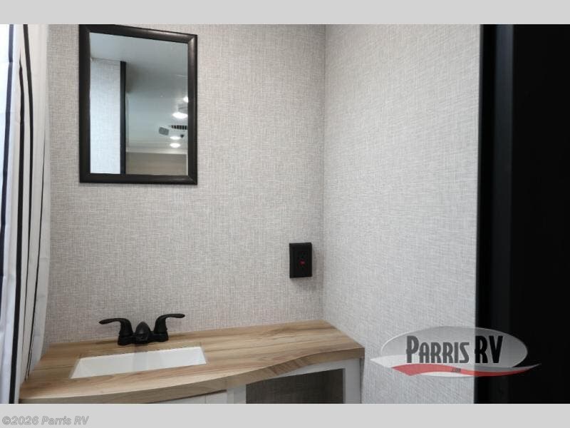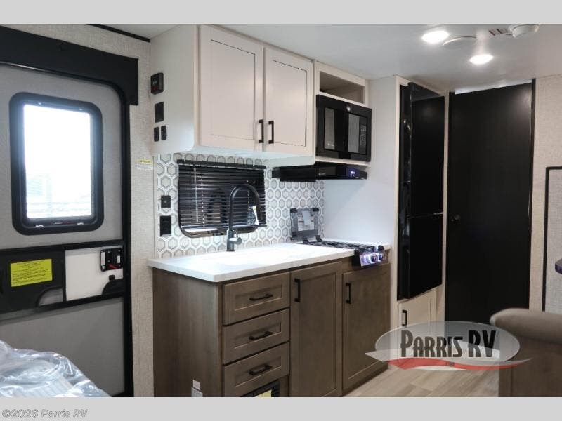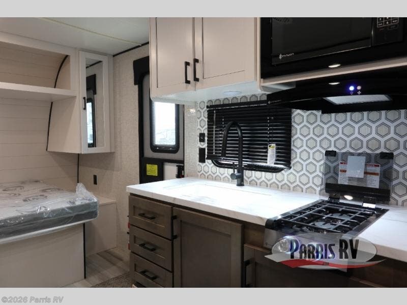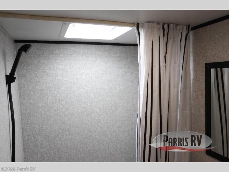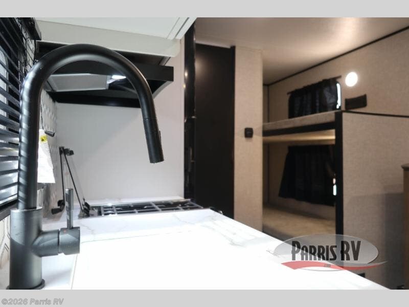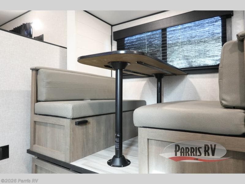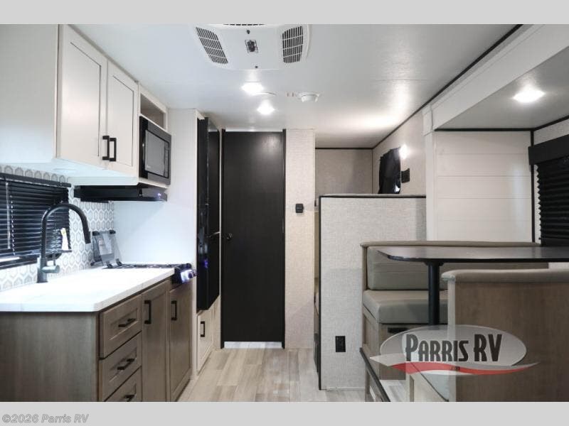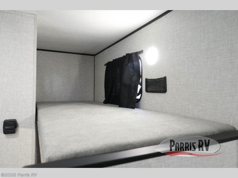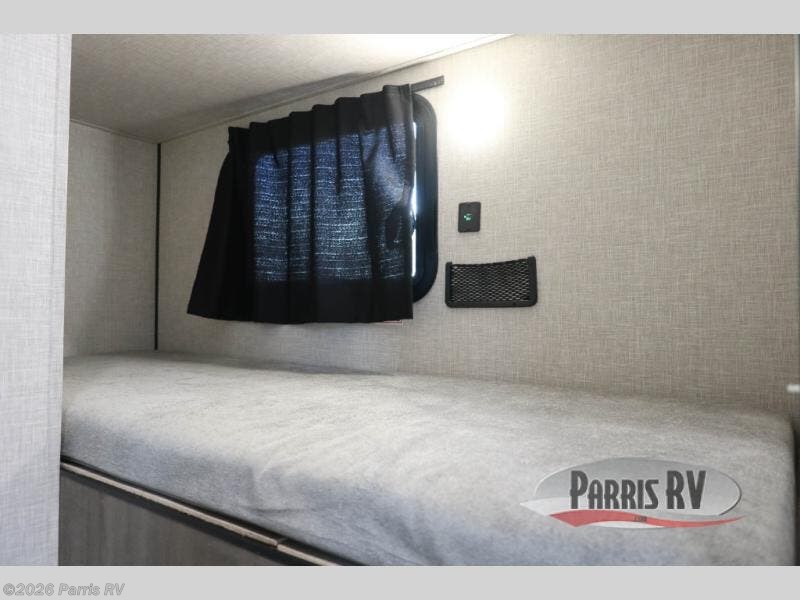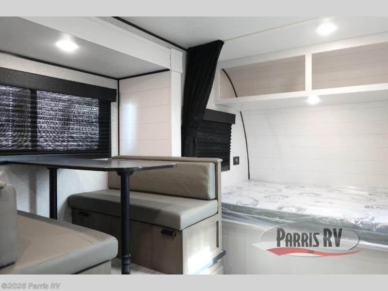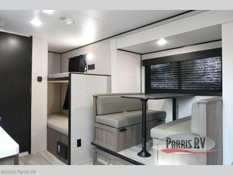 Camping with a group has never been easier than in this travel trailer with bunk beds! You will enjoy the bed up front and there is a wardrobe nearby to keep your clothes tidy. This model also includes a booth dinette slide that will be perfect for meal times, game night, and even sleeping space for one to two people. Whip up some eggs and bacon on the two burner cooktop or in the microwave oven before you head out for the day. The full bath with a tub/shower will be perfect if you're camping with little ones, and there is plenty of counterspace to set out your bathroom necessities.