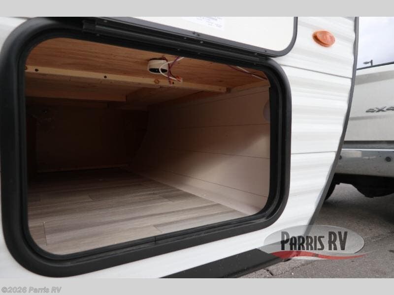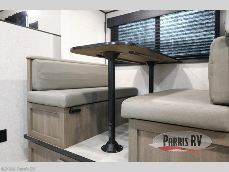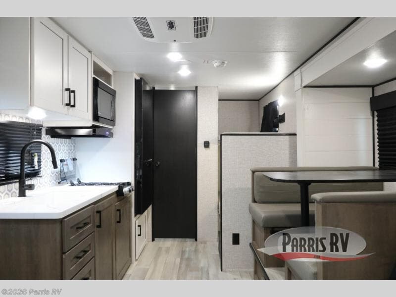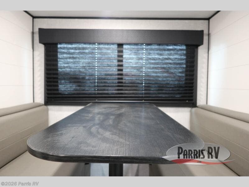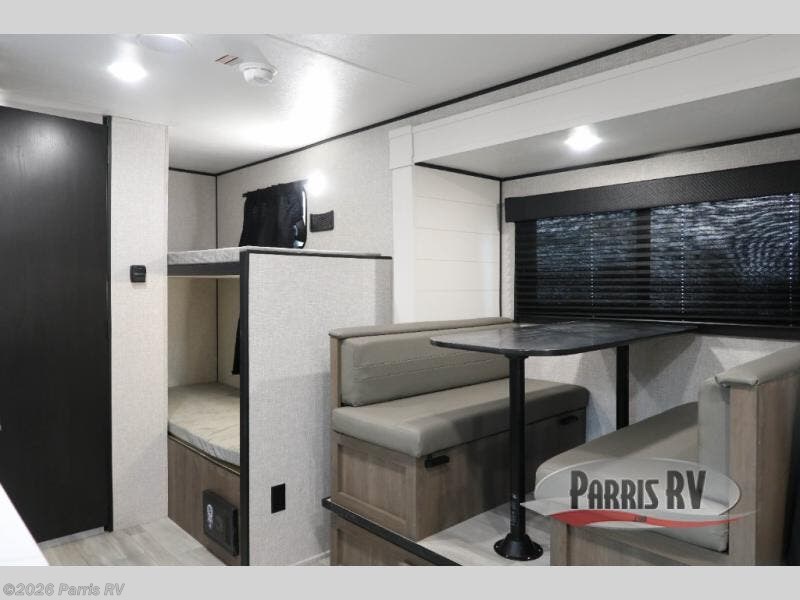 Camping with a group has never been easier than in this travel trailer with bunk beds! You will enjoy the bed up front and there is a wardrobe nearby to keep your clothes tidy. This model also includes a booth dinette slide that will be perfect for meal times, game night, and even sleeping space for one to two people. Whip up some eggs and bacon on the two burner cooktop or in the microwave oven before you head out for the day. The full bath with a tub/shower will be perfect if you're camping with little ones, and there is plenty of counterspace to set out your bathroom necessities.