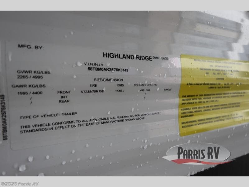 2025 Highland Ridge Open Range Conventional 19BH Literature