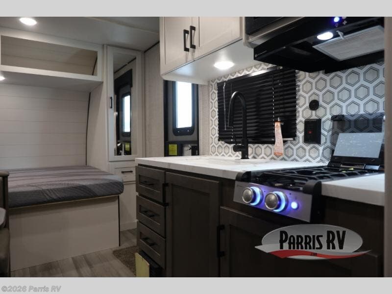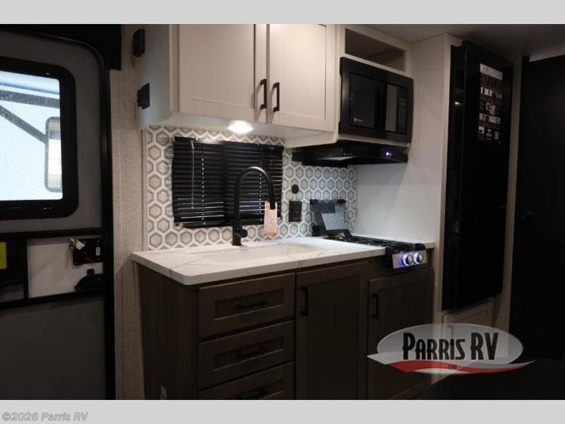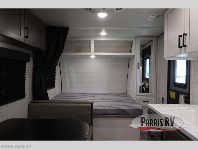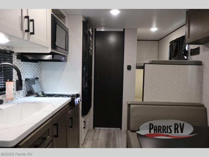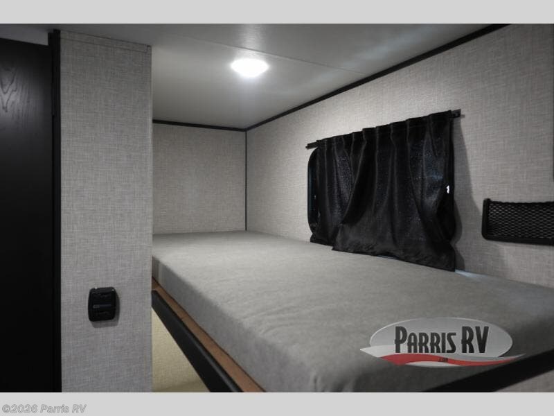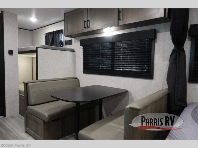 This single-axle trailer is perfect for outdoor excursions, so head out! You will find bunk beds, a bed up front, plus a booth dinette that can also be sleeping space for one to two people each night. There is a two burner cooktop and a microwave oven to cook breakfast in the morning, and full bath amenities so you can clean up after a long day outdoors. This model also includes outdoor storage that will be perfect for tackle boxes or your tools, and the 13' power awning will provide shade as you visit with friends.