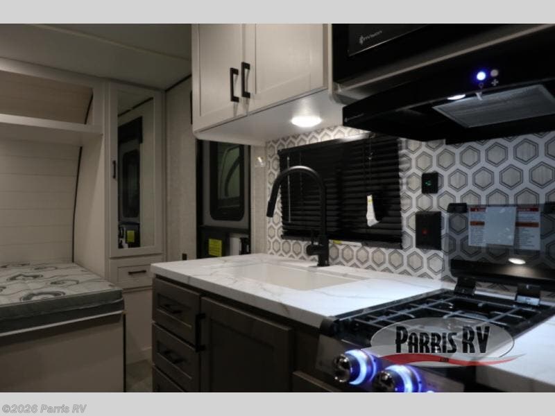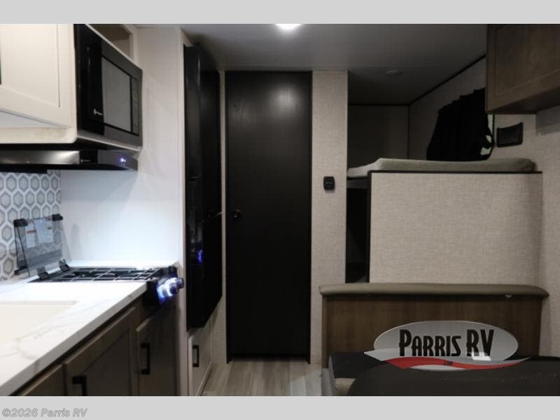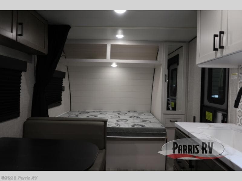 This single-axle trailer is perfect for outdoor excursions, so head out! You will find bunk beds, a bed up front, plus a booth dinette that can also be sleeping space for one to two people each night. There is a two burner cooktop and a microwave oven to cook breakfast in the morning, and full bath amenities so you can clean up after a long day outdoors. This model also includes outdoor storage that will be perfect for tackle boxes or your tools, and the 13' power awning will provide shade as you visit with friends.