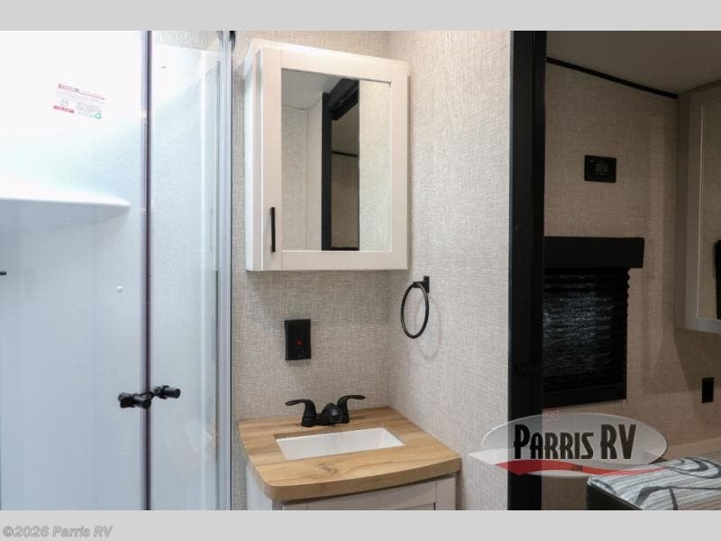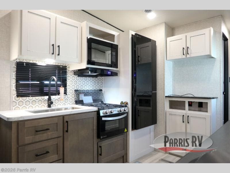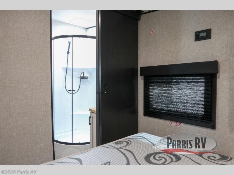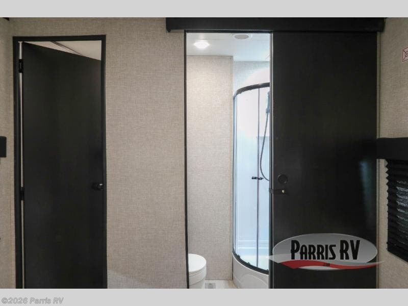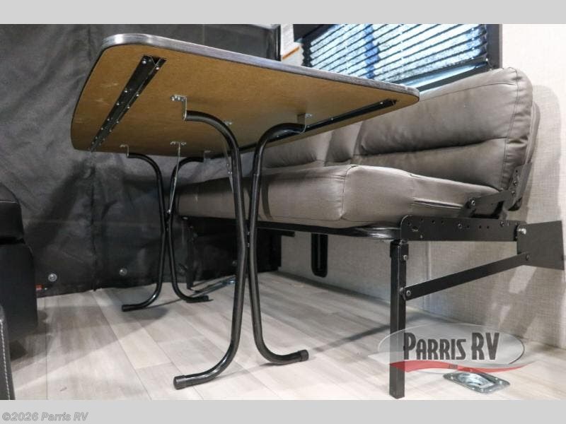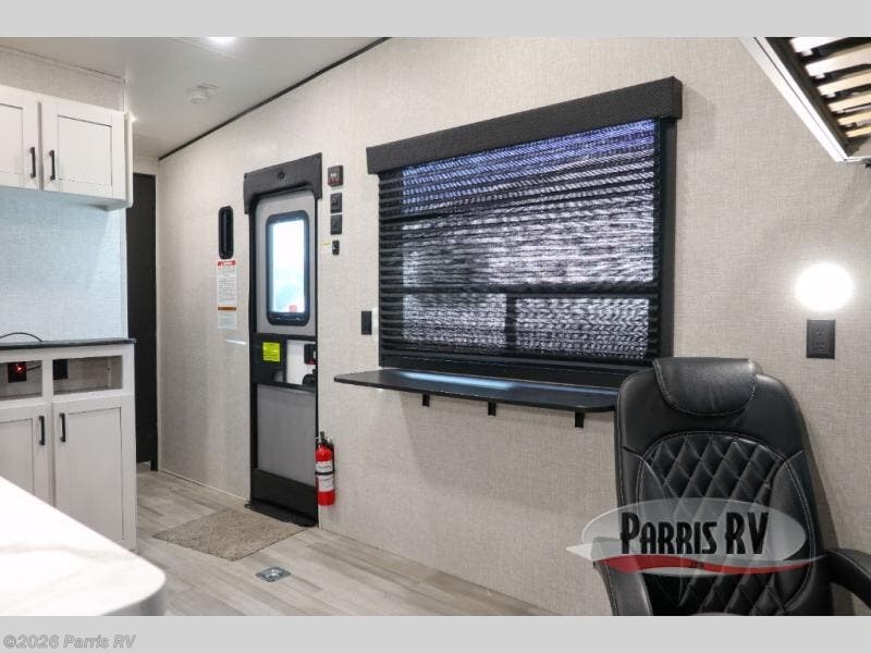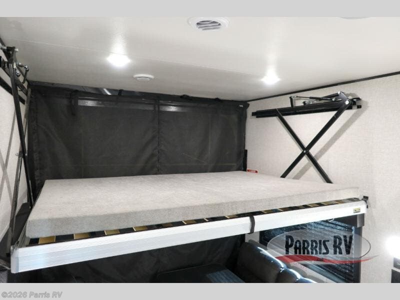 You will have everything you need for a comfortable camping trip in this toy hauler! Unload your off-road toy easily from the cargo area featuring up to 14' of space using the spring assist 8' ramp door for a fun day out on the trails. The fully equipped kitchen has a three burner cooktop to fry up some eggs in the morning, and you can enjoy them at either the flip-up bar top with two stools or at the rear convertible sofa and two chairs in the other side if the removable table. The dual entry bathroom is easy to access from the front private bedroom and it has a radius shower to wash the mud out of your hair.