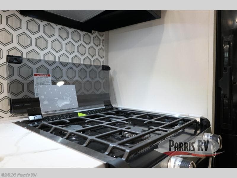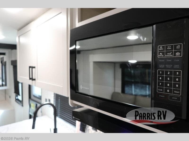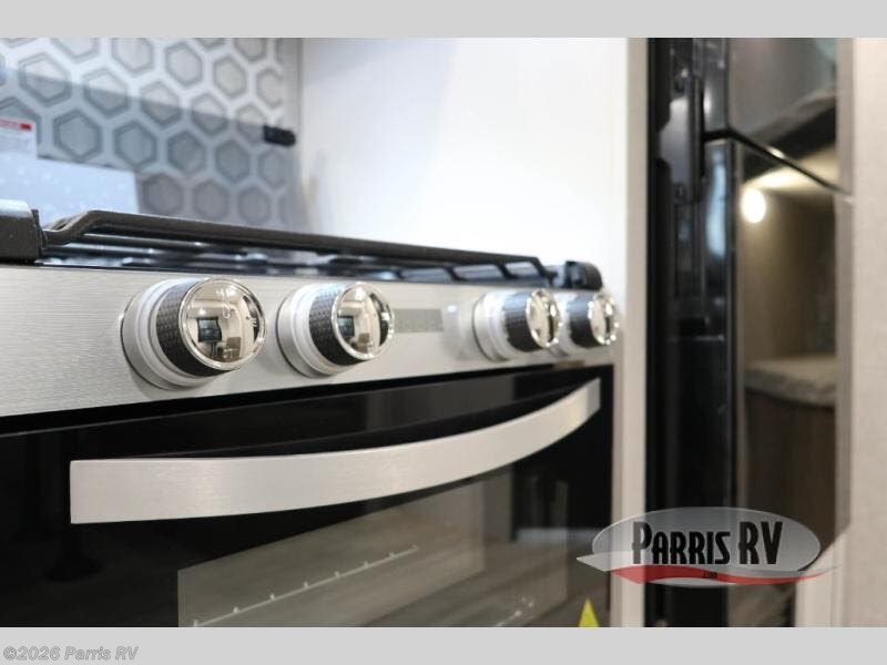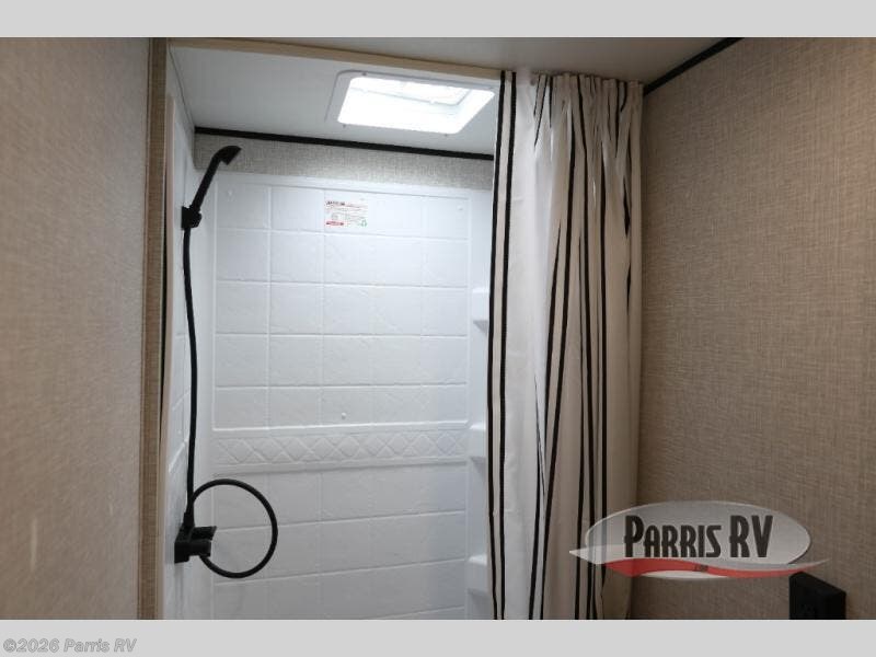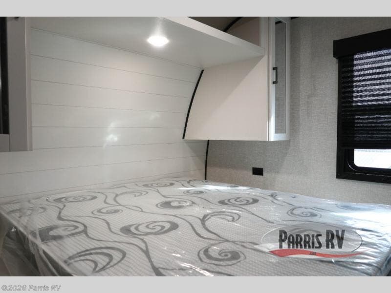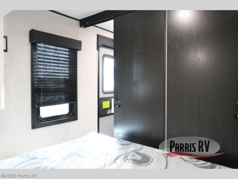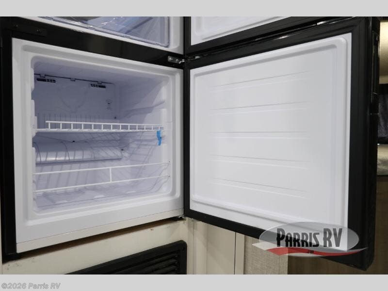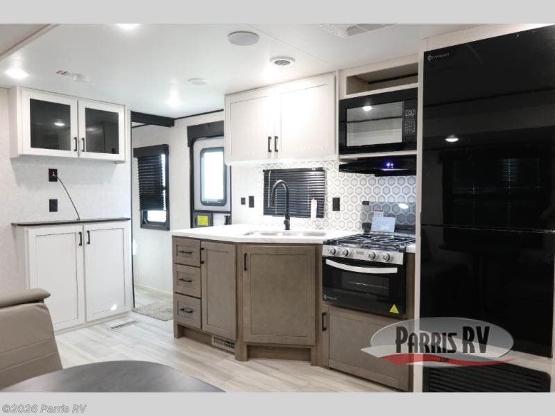 You're going to love every minute spent in this spacious travel trailer. The booth dinette and jack-knife sofa within the large slide out will be perfect for meal times, relaxing, and additional sleeping space. Add the optional Smart TV to the entertainment center and you're set up for movie night! This model includes an outside kitchen with a griddle and a refrigerator for cold drinks, plus indoor appliances if the rain has ruined your plans for the day. You will enjoy your own bedroom up front with space-saving sliding doors and two wardrobes for your clothes.