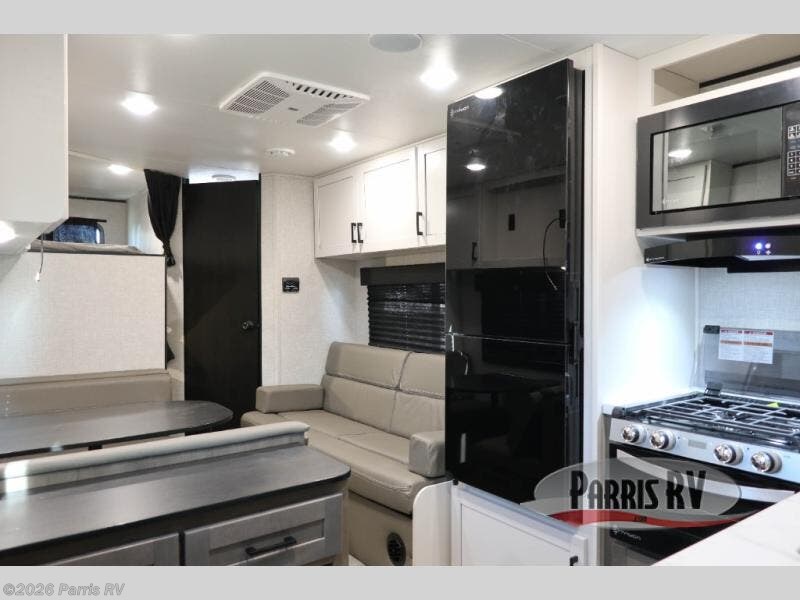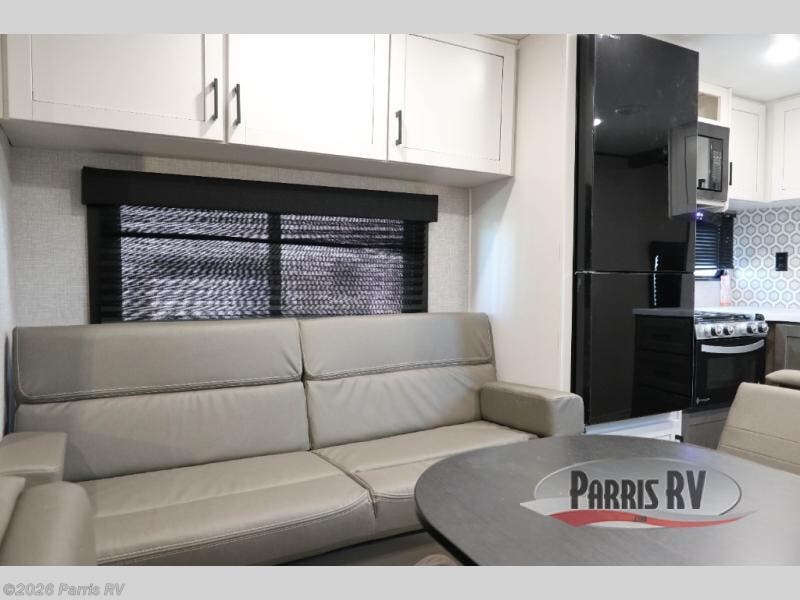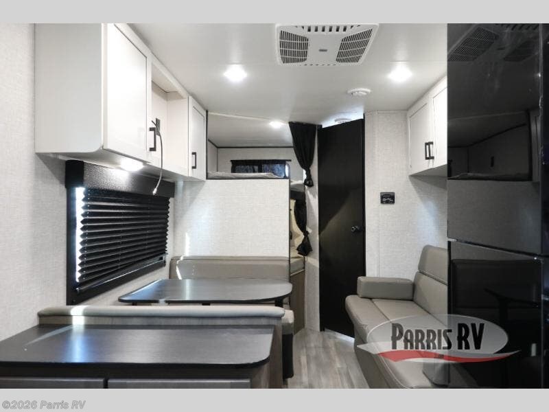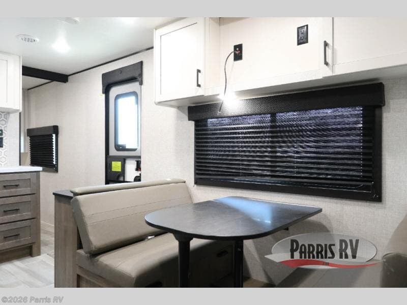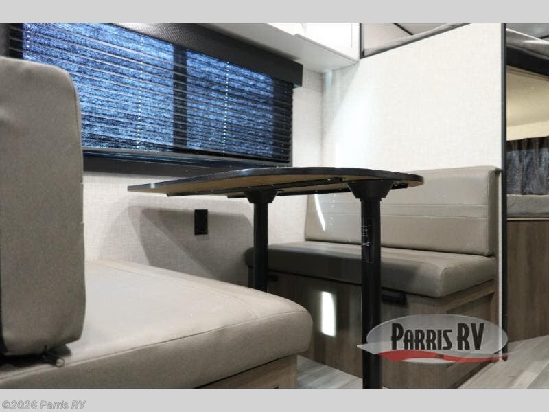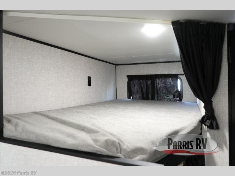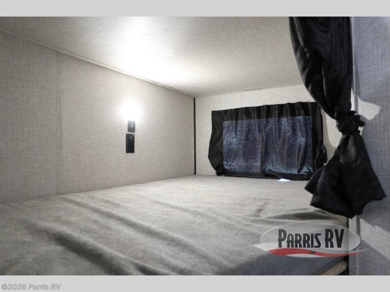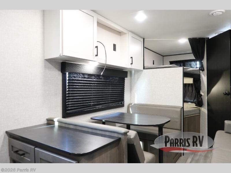 This dual-axle travel trailer can sleep eight people each night, so invite your family or friends along. You will enjoy the front private bedroom up front with dual wardrobes to keep your clothes tidy. While the chef of your group is preparing lunch on the three burner cooktop, everyone else can visit on the jack-knife sofa or play a game at the booth dinette. You will also find an 18' power awning with LED lights outdoors which is where you may usually find everyone. And the private bathroom is right next to the double-size bunks for added convenience!