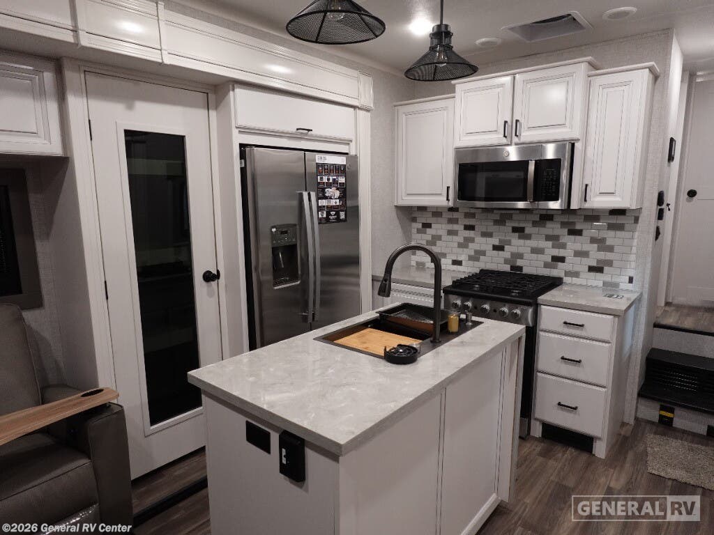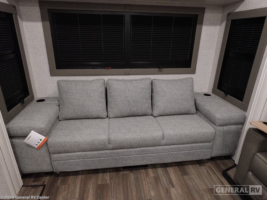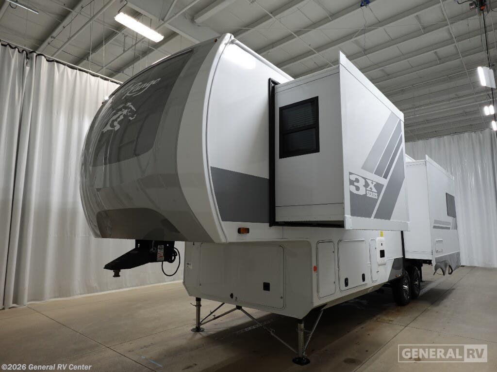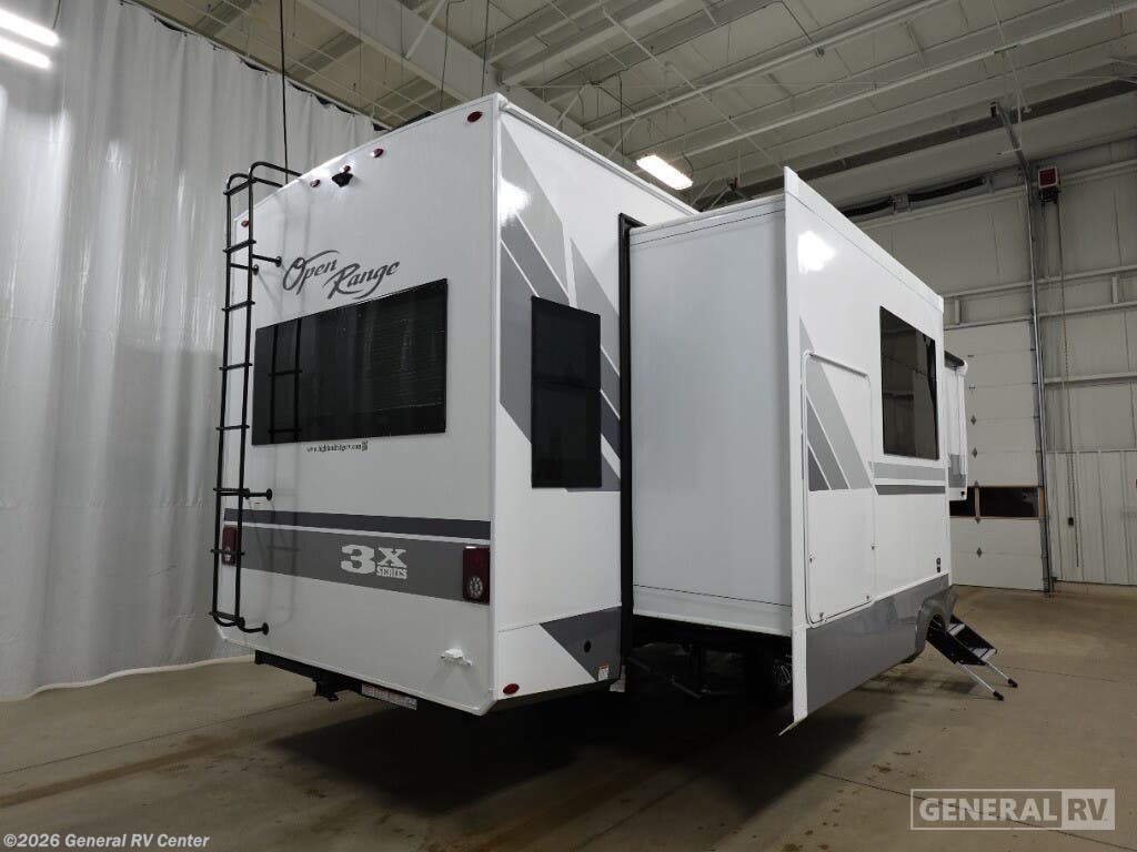 Step into the world of luxury and comfort with the 2025 Highland Ridge Open Range 3X 287RLS. This remarkable fifth wheel is designed for those who seek both adventure and the comfort of home. Measuring over 35 feet in length, it offers a spacious retreat with three slides that expand your living space. The heart of this RV is its center kitchen, equipped with a full-size refrigerator and a four-burner cooktop, perfect for creating gourmet meals on the road. The rear living area invites relaxation with its theater seating and an entertainment center complete with a cozy fireplace. The Open Range 3X 287RLS boasts a luxurious front bedroom featuring a king-sized bed with a power base, ensuring restful nights after a day of exploration. The convenience of a washer and dryer means you can enjoy extended trips without the hassle of finding a laundromat. With a generous fresh water capacity of 75 gallons and ample gray and black water tanks, this RV is ready for extended adventures. The powered retractable awning and outdoor kitchen with a grill hookup enhance your outdoor living experience, making this RV a perfect home away from home. For more details, visit your nearest General RV dealership.