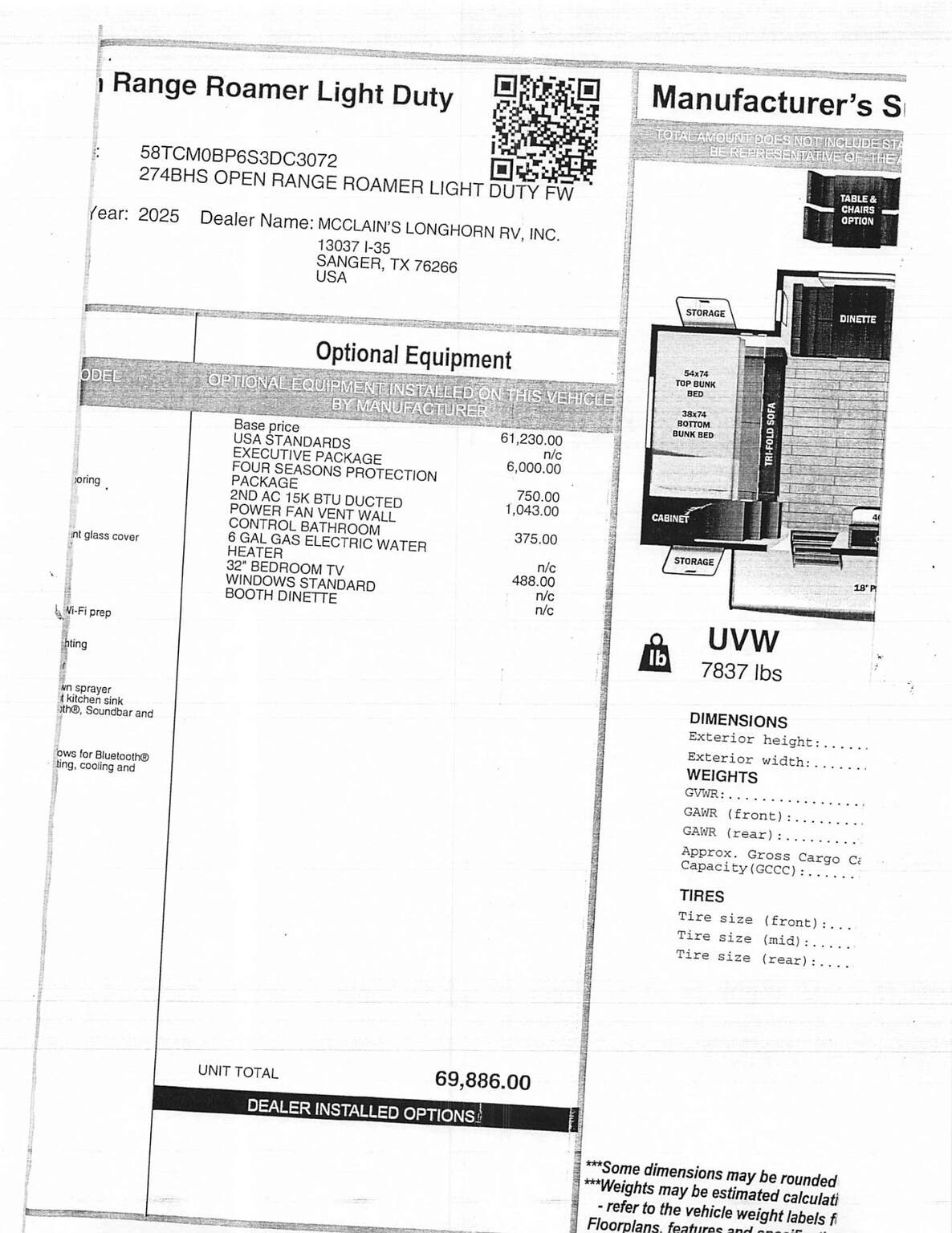 Request More Info on this 2025 Highland Ridge Open Range Roamer LIGHT 274BHS Offered for sale by McClain's Longhorn RV