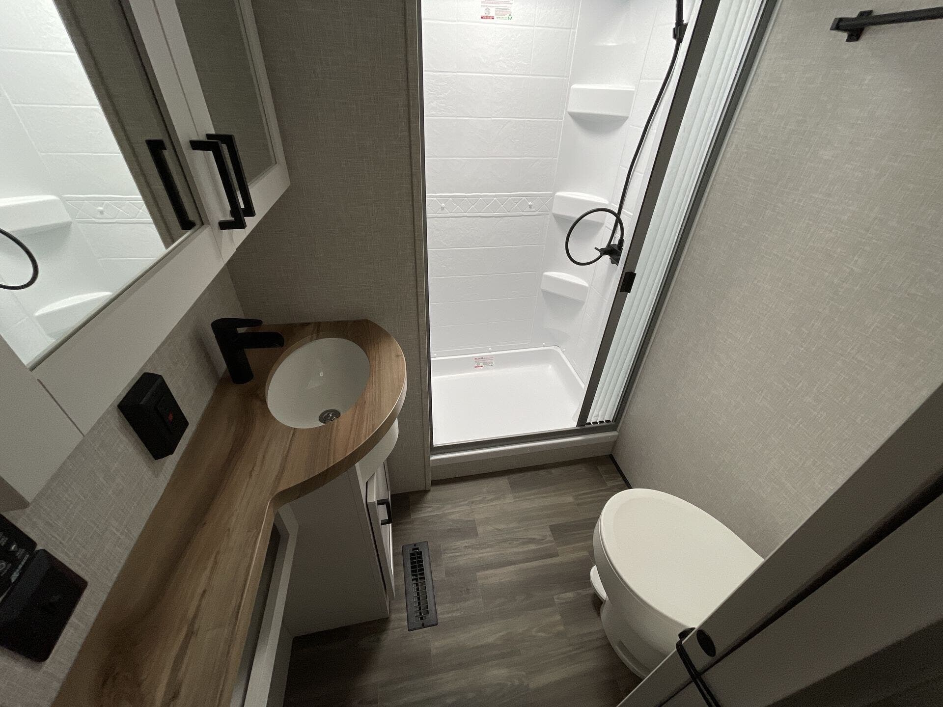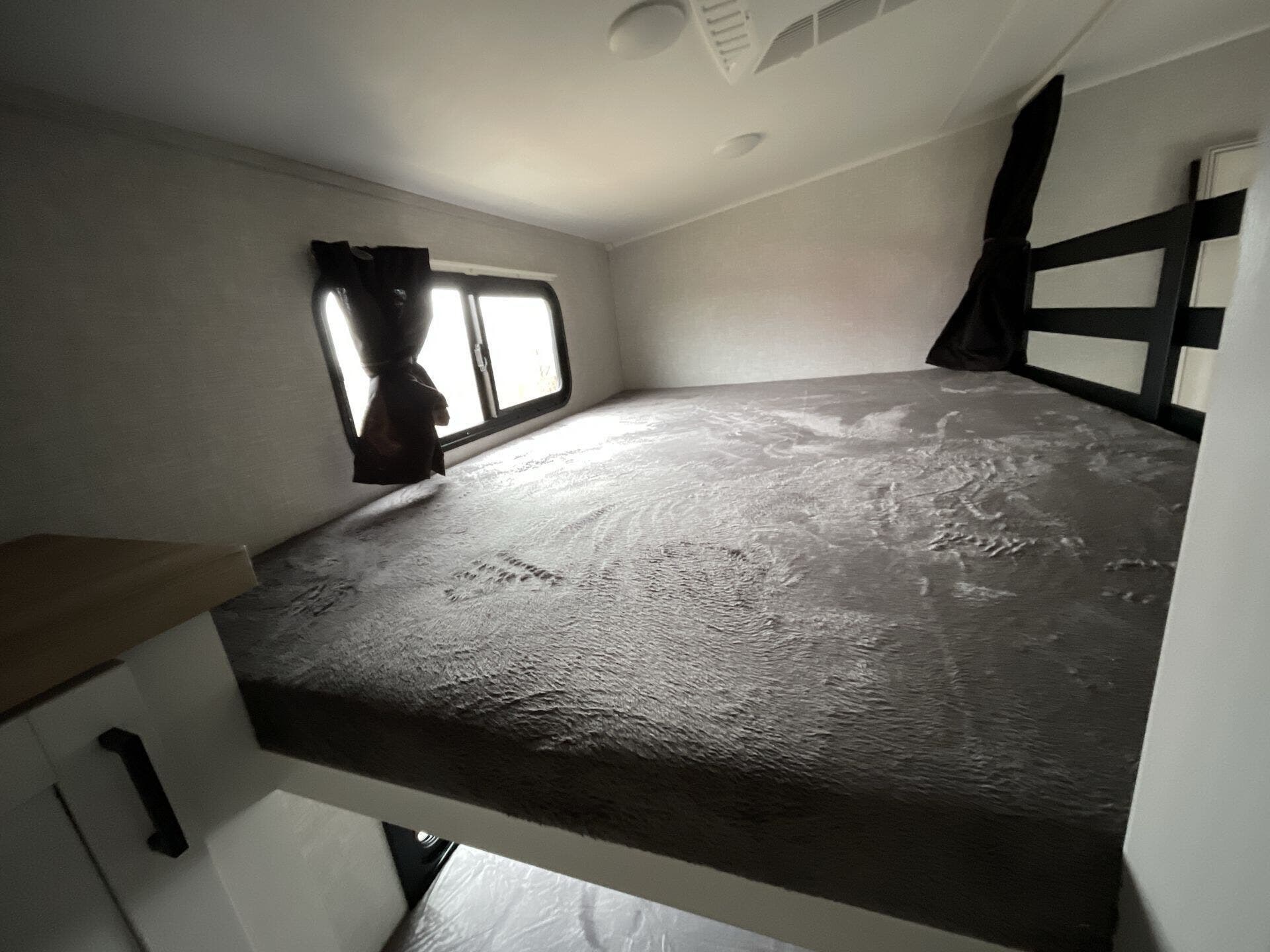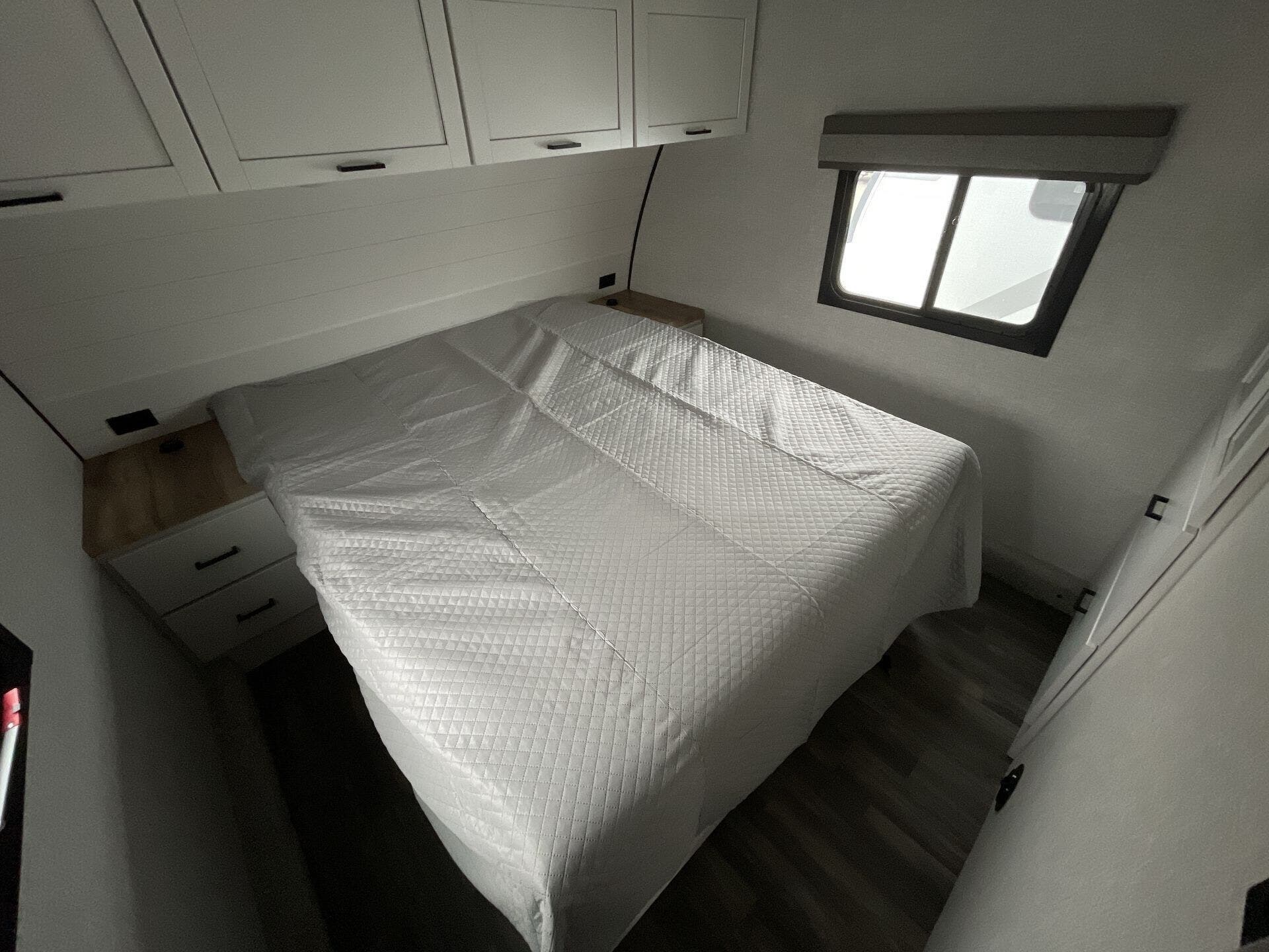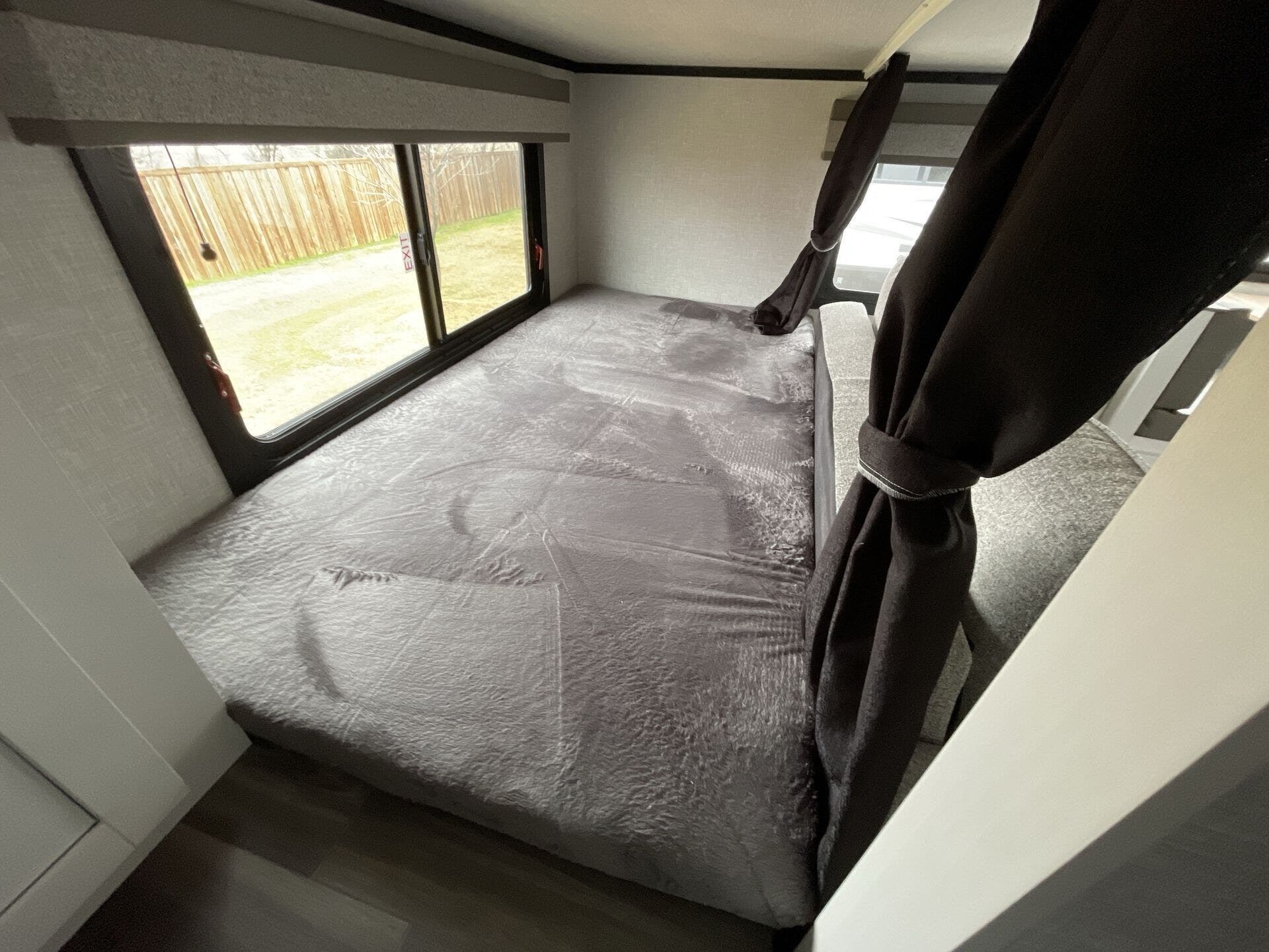 The kitchen is fully equipped with modern appliances, including a three-burner stove, microwave, oven, refrigerator, and a large pantry for storage. The spacious bathroom offers a full-size shower, sink, and toilet, ensuring comfort on the road. Outside, the Roamer 274BHS comes with a power awning, outdoor kitchen, and large storage compartments, making it easy to enjoy meals and activities outdoors. Built with Highland Ridge’s durable construction and insulation, this travel trailer is designed for all-season use, providing a reliable and comfortable experience no matter the destination.