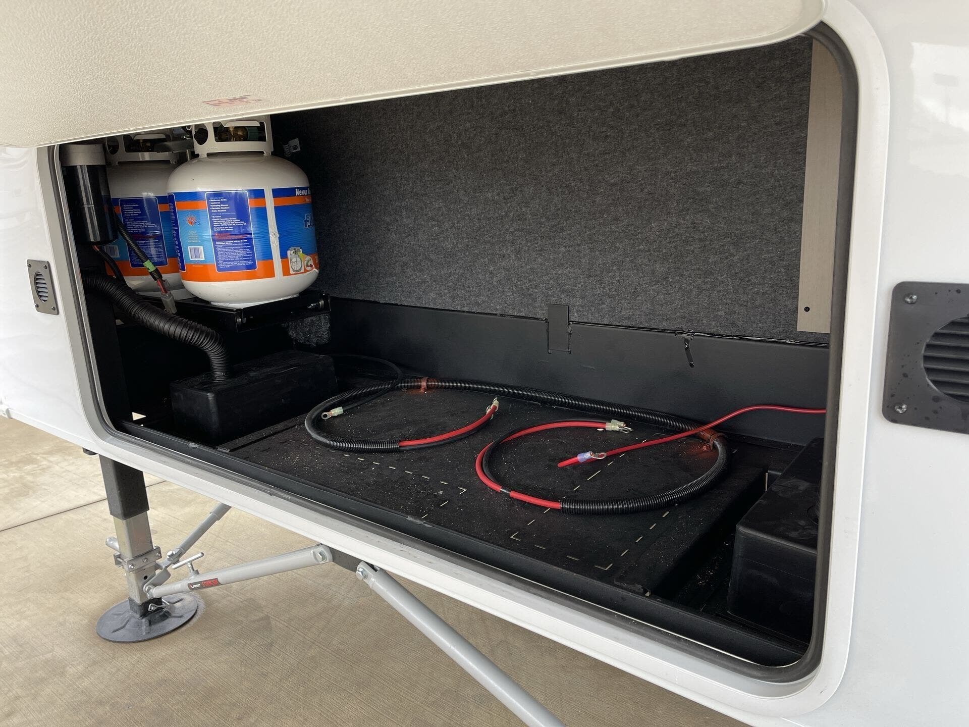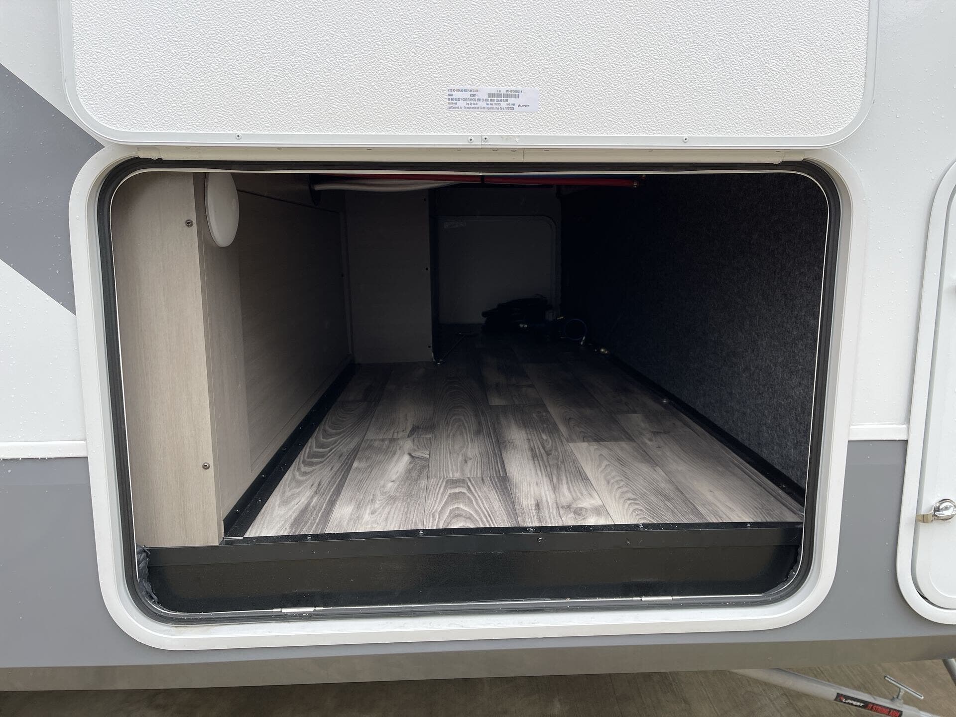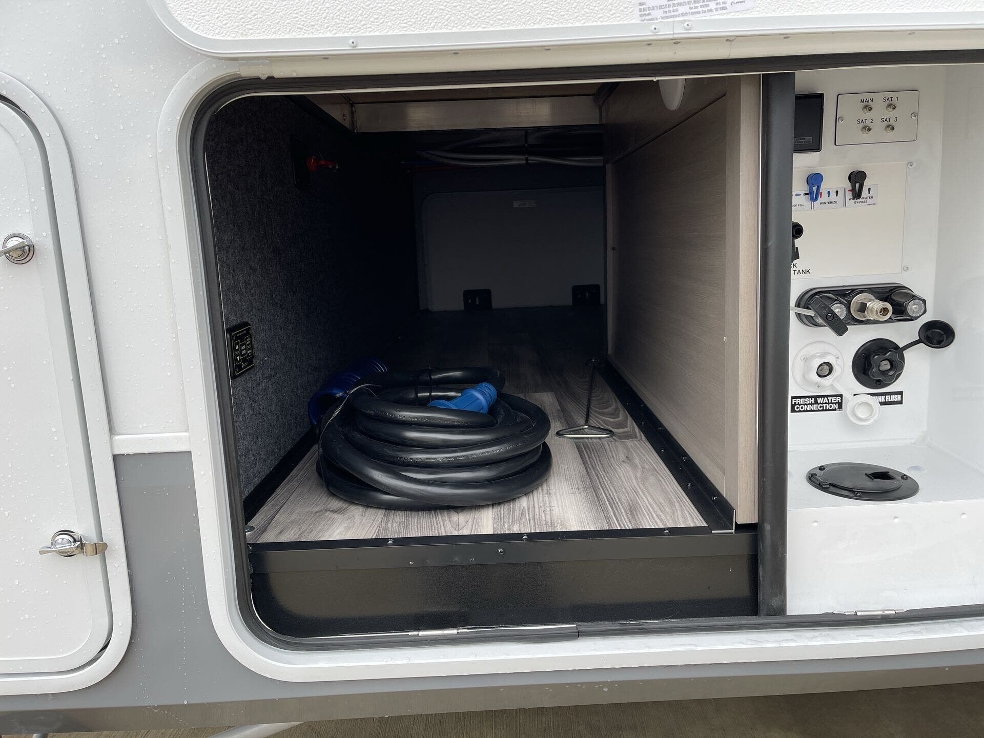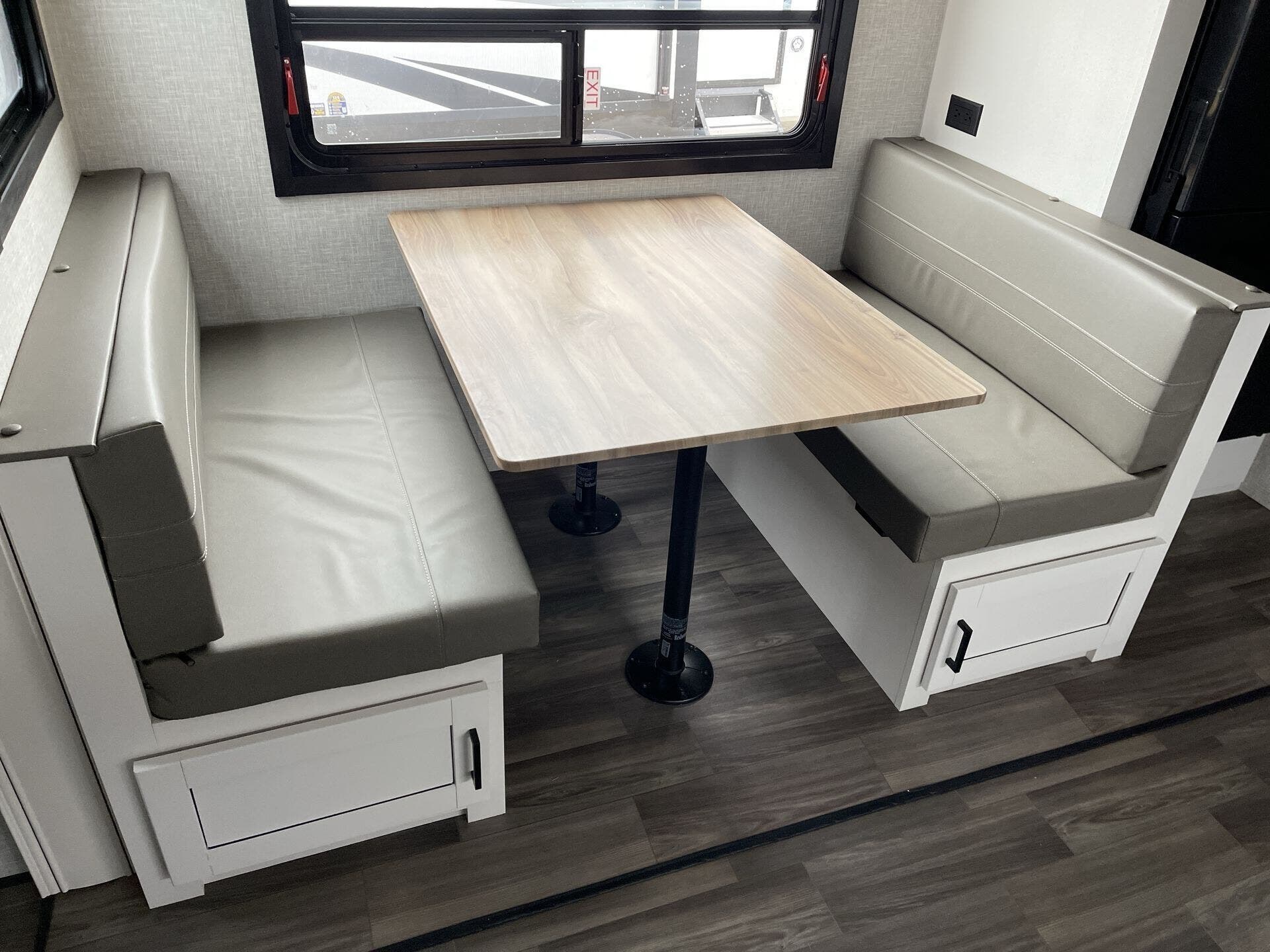 The kitchen is fully equipped with modern appliances, including a three-burner stove, microwave, oven, refrigerator, and a large pantry for storage. The spacious bathroom offers a full-size shower, sink, and toilet, ensuring comfort on the road. Outside, the Roamer 274BHS comes with a power awning, outdoor kitchen, and large storage compartments, making it easy to enjoy meals and activities outdoors. Built with Highland Ridge’s durable construction and insulation, this travel trailer is designed for all-season use, providing a reliable and comfortable experience no matter the destination.