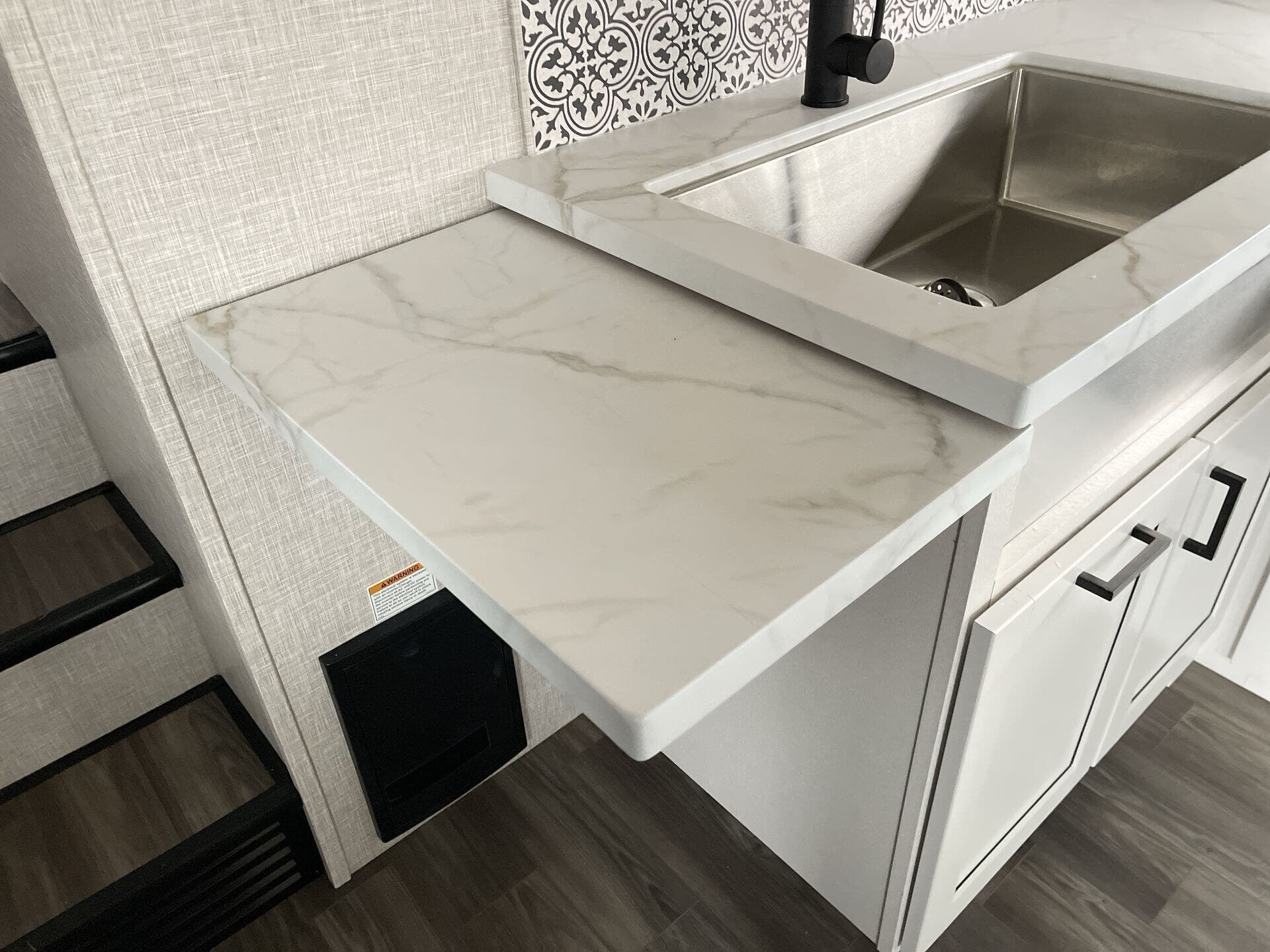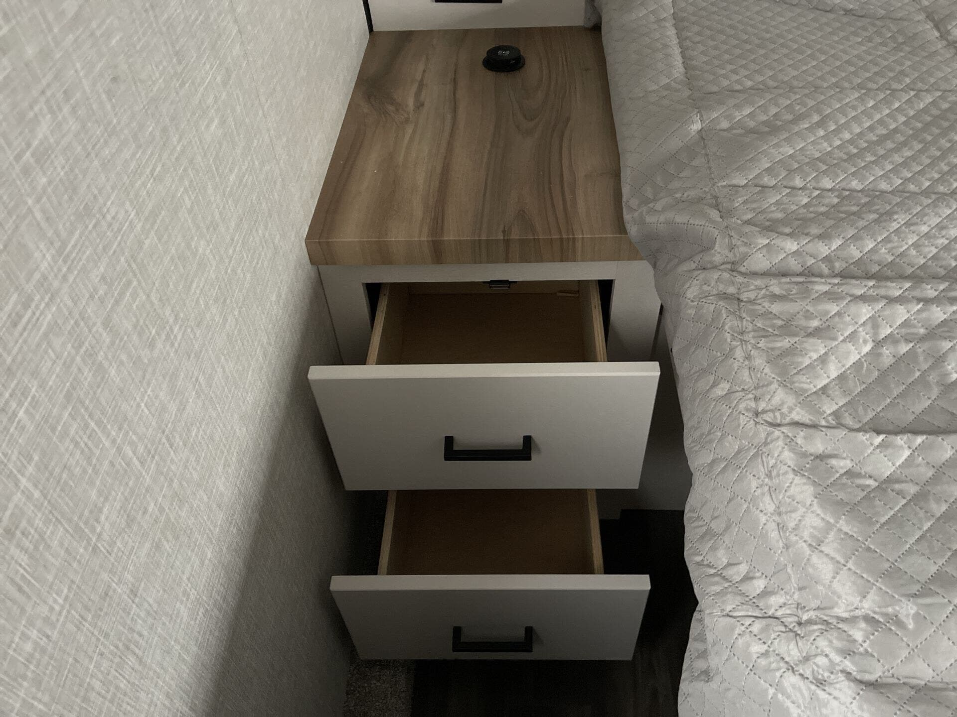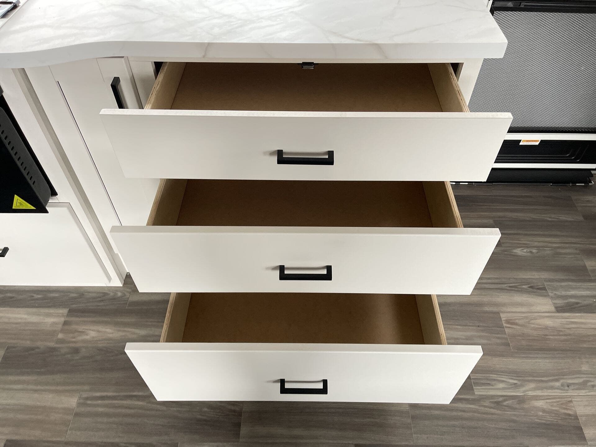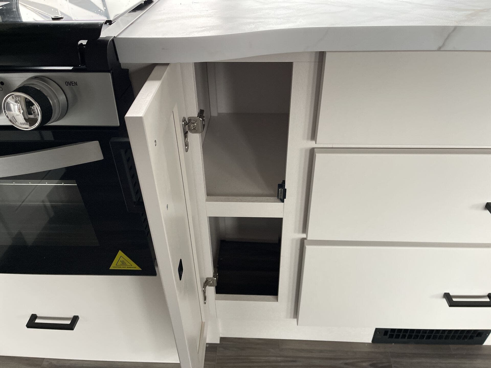 The kitchen is fully equipped with modern appliances, including a three-burner stove, microwave, oven, refrigerator, and a large pantry for storage. The spacious bathroom offers a full-size shower, sink, and toilet, ensuring comfort on the road. Outside, the Roamer 274BHS comes with a power awning, outdoor kitchen, and large storage compartments, making it easy to enjoy meals and activities outdoors. Built with Highland Ridge’s durable construction and insulation, this travel trailer is designed for all-season use, providing a reliable and comfortable experience no matter the destination.