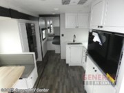 The whole gang can camp together in this travel trailer! Everyone will have a comfortable place to sleep between the rear corner set of double-size bunk beds, the queen bed inside the front private bedroom, and even the U-shaped dinette once converted. Behind the entertainment center there is a closet for your storage needs and the kitchen pantry is big enough to store everyone's favorite snacks. The chef will enjoy cooking with the three burner cooktop and 17" oven inside but enjoy cooking at the outside kitchen even more!