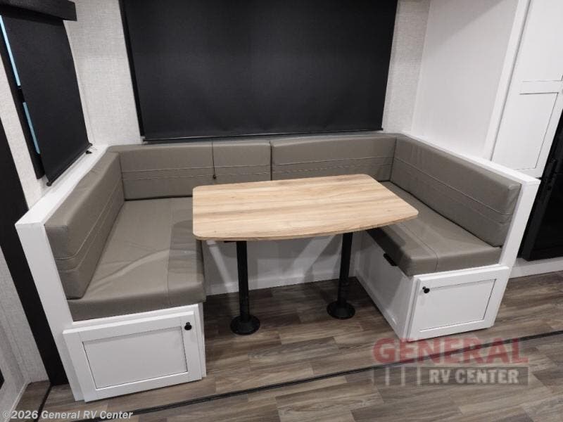 The whole gang can camp together in this travel trailer! Everyone will have a comfortable place to sleep between the rear corner set of double-size bunk beds, the queen bed inside the front private bedroom, and even the U-shaped dinette once converted. Behind the entertainment center there is a closet for your storage needs and the kitchen pantry is big enough to store everyone's favorite snacks. The chef will enjoy cooking with the three burner cooktop and 17" oven inside but enjoy cooking at the outside kitchen even more!