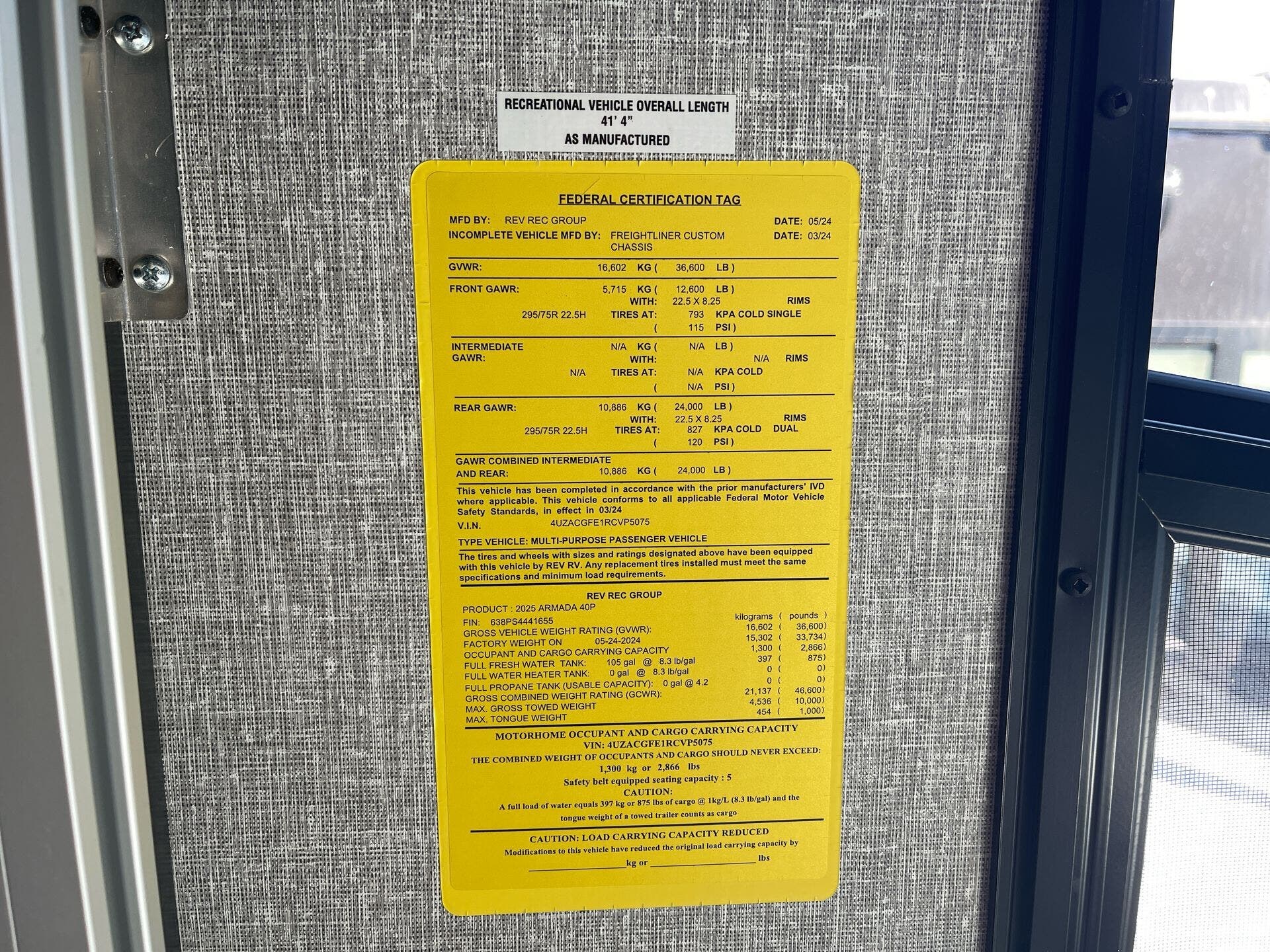 - VIN4UZACGFE1RCVP5075