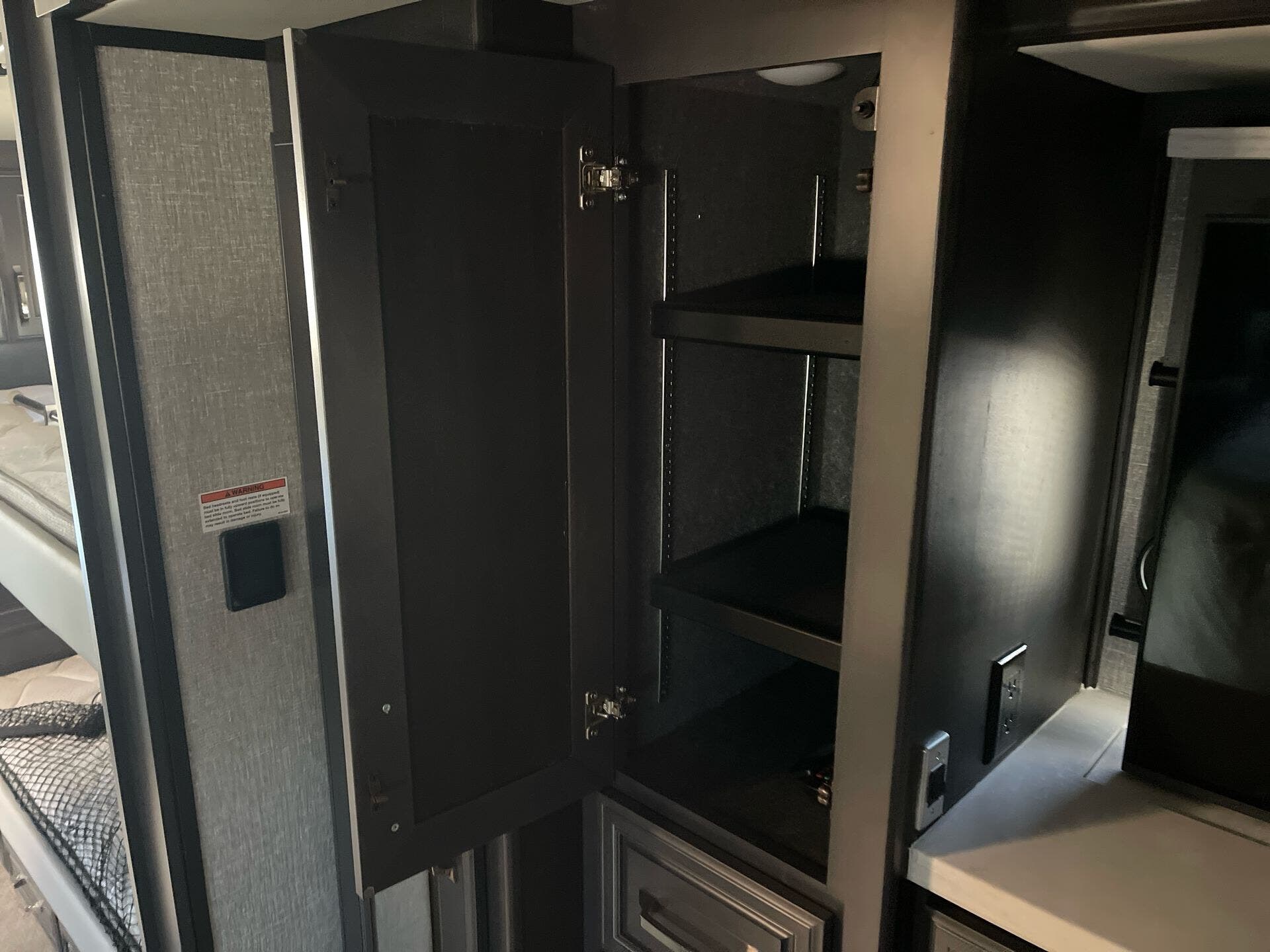 The Armada 40P offers a refined interior designed for home-like comfort on the road. The floorplan maximizes living space with multiple slideouts, creating generous seating, a roomy kitchen, and a welcoming dining area. Built to accommodate family adventures and full-time RV living, it blends luxury finishes with practical storage and high-end appliances. The residential refrigerator and convection microwave setup deliver the convenience of a modern home kitchen, while the washer and dryer add everyday practicality during travel. A single air conditioner keeps interiors comfortable, complemented by smart insulation and ventilation for year-round use.