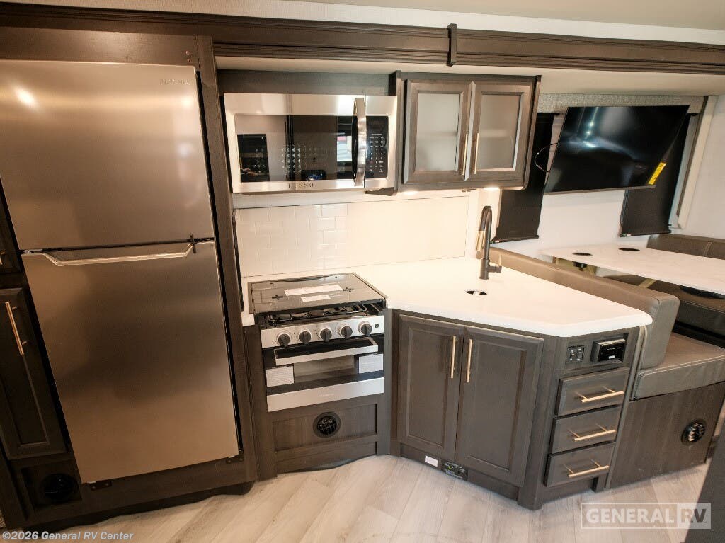Step into the future of travel with the 2025 Holiday Rambler Eclipse 32S. This motorhome is designed for adventurers who crave both luxury and practicality. With its thoughtfully crafted floorplan, you'll find a spacious front living area that's perfect for entertaining. The hide-a-loft electric drop-down bed and jackknife sofa offer versatile sleeping options, ensuring comfort for up to eight guests. The center kitchen is well-equipped with a full-size electric refrigerator and a three-burner cooktop, making meal preparation a breeze. Imagine enjoying your meals at the dream dinette while taking in the panoramic views through large windows. The rear of the RV is dedicated to relaxation, featuring a serene bedroom with a king-sized Serenity Series bed and ample storage space, including a wardrobe and dresser. The dual lavatories and a shower with both plastic and glass options ensure convenience for all. With a 14 ft. powered retractable awning, you can extend your living space outdoors, perfect for enjoying warm evenings. Built on a robust Ford F53 chassis with a powerful 335-horsepower engine, the Eclipse 32S offers a smooth and reliable ride. Visit your nearest General RV dealership to explore this remarkable motorhome and start planning your next adventure.