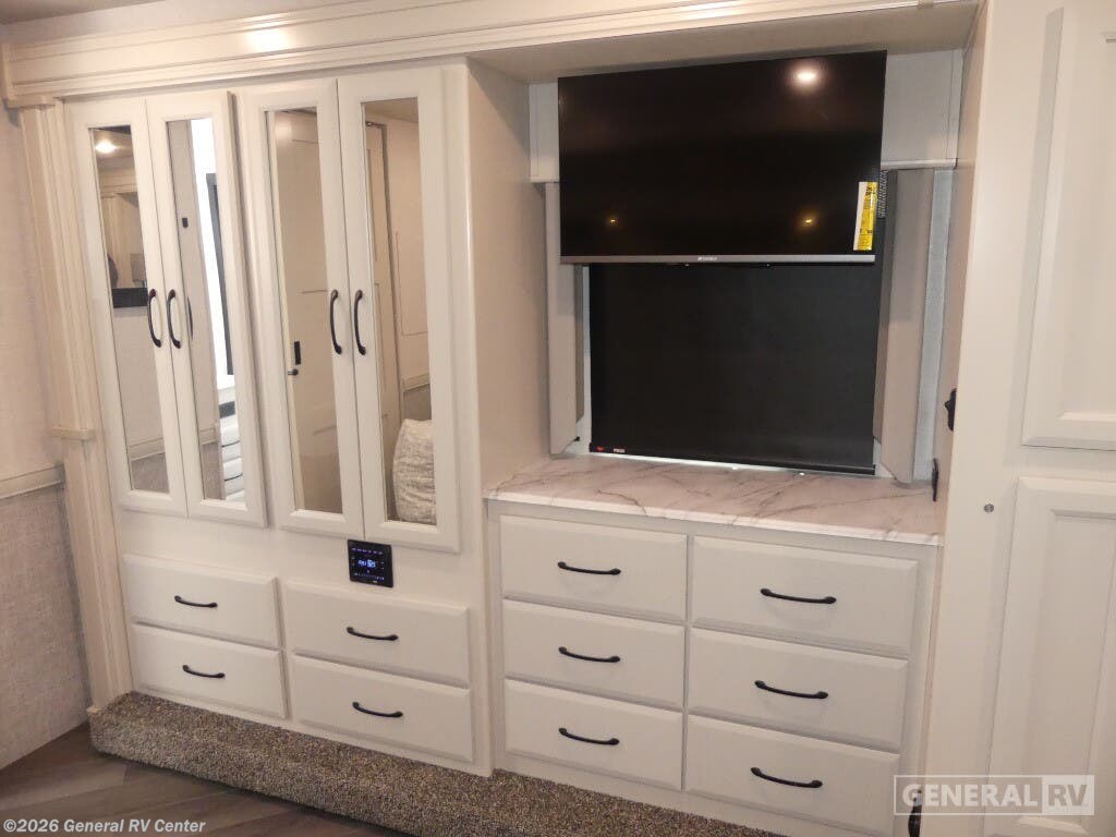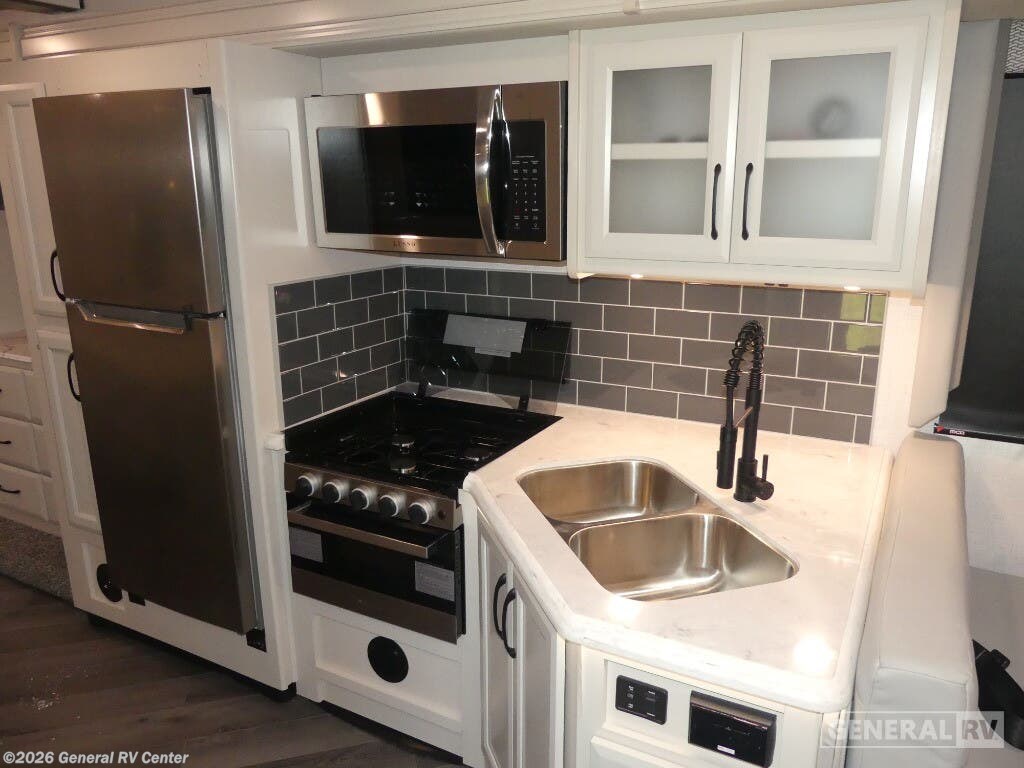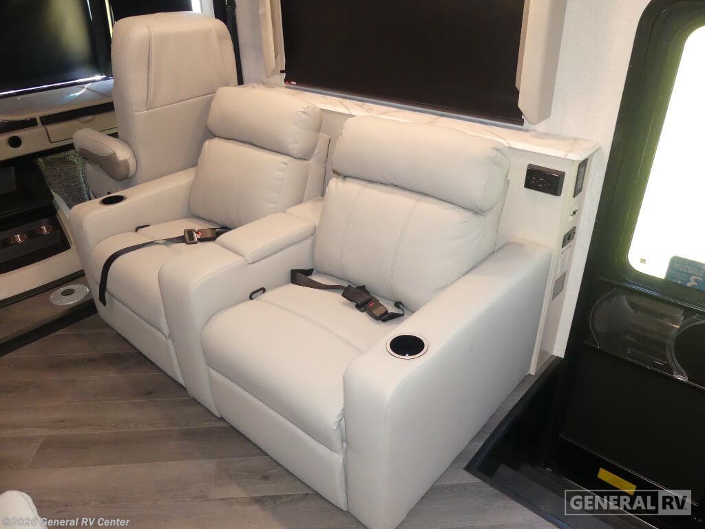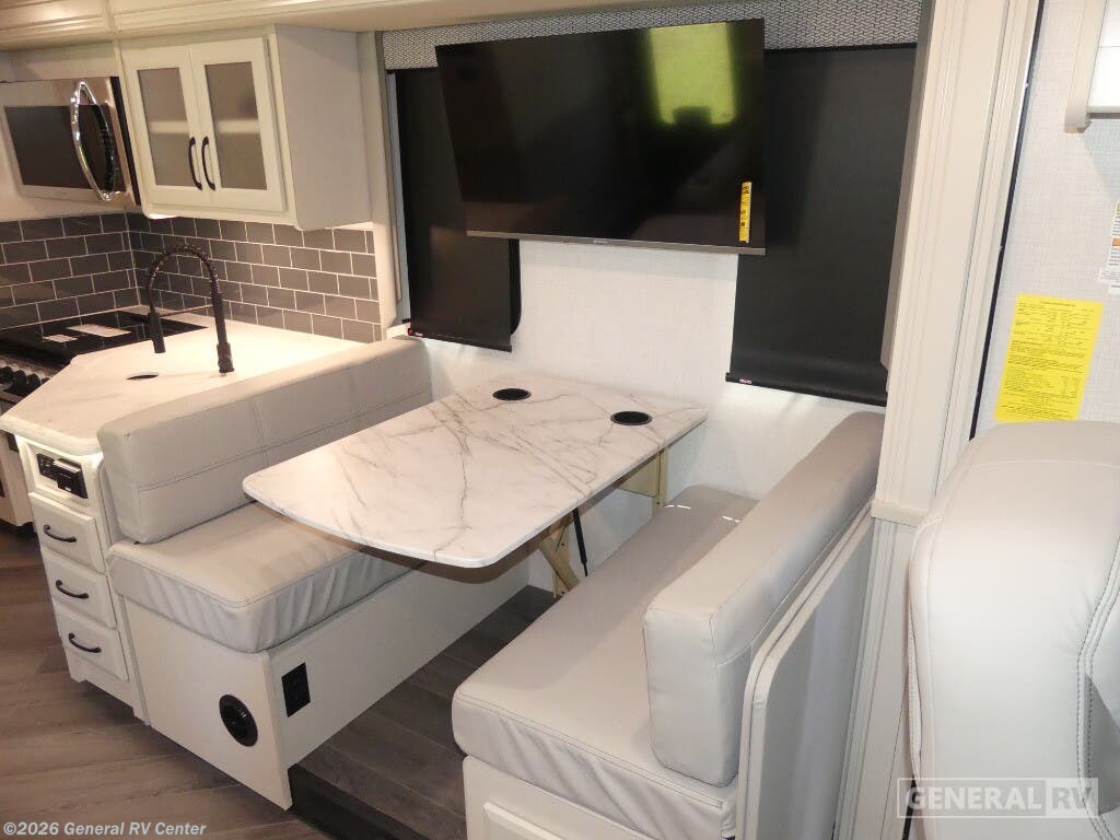 Step into the future of travel with the 2025 Holiday Rambler Eclipse 32S. This motorhome is designed for adventurers who crave both luxury and practicality. With its thoughtfully crafted floorplan, you'll find a spacious front living area that's perfect for entertaining. The hide-a-loft electric drop-down bed and jackknife sofa offer versatile sleeping options, ensuring comfort for up to eight guests. The center kitchen is well-equipped with a full-size electric refrigerator and a three-burner cooktop, making meal preparation a breeze. Imagine enjoying your meals at the dream dinette while taking in the panoramic views through large windows. The rear of the RV is dedicated to relaxation, featuring a serene bedroom with a king-sized Serenity Series bed and ample storage space, including a wardrobe and dresser. The dual lavatories and a shower with both plastic and glass options ensure convenience for all. With a 14 ft. powered retractable awning, you can extend your living space outdoors, perfect for enjoying warm evenings. Built on a robust Ford F53 chassis with a powerful 335-horsepower engine, the Eclipse 32S offers a smooth and reliable ride. Visit your nearest General RV dealership to explore this remarkable motorhome and start planning your next adventure.