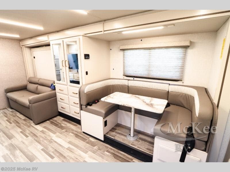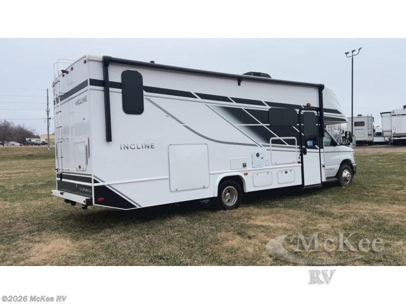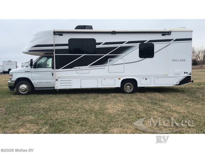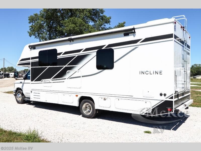 With any Incline Class C gas motorhome by Holiday Rambler, you will enjoy unrivaled performance, unbeatable storage, and luxury at every turn! You will love the journey just as much as the destination with reclining back and swivel captain's chairs and side view cameras, plus there is a Ford 7.3L V8 engine for power you can feel. Each model features painted steel frame construction with a Powerlock System ll that interlocks the walls to the roof for added durability, along with Vacu-Bond aluminum framed sidewalls, roof, and floor. Outside, you'll find automatic hydraulic leveling jacks, patio lighting, slam latch luggage door handles, and a Winegard Air 360+ that will allow you to stay connected as you travel. Head inside to find Surf-X countertops, slide out fascia with coordinating interior wood color, hidden hinge cabinet doors, kitchen backsplash, and many more comforts!