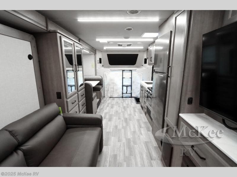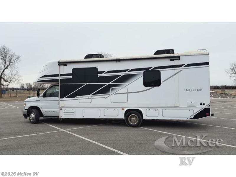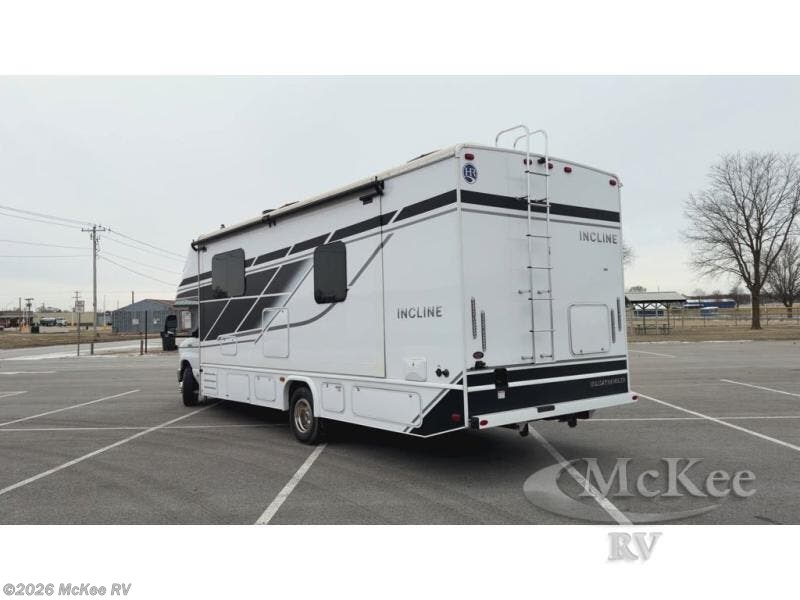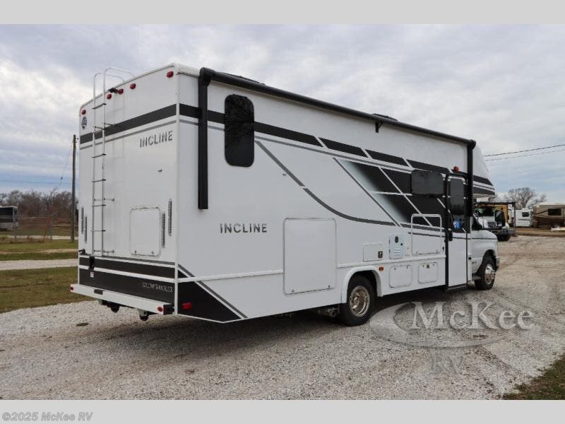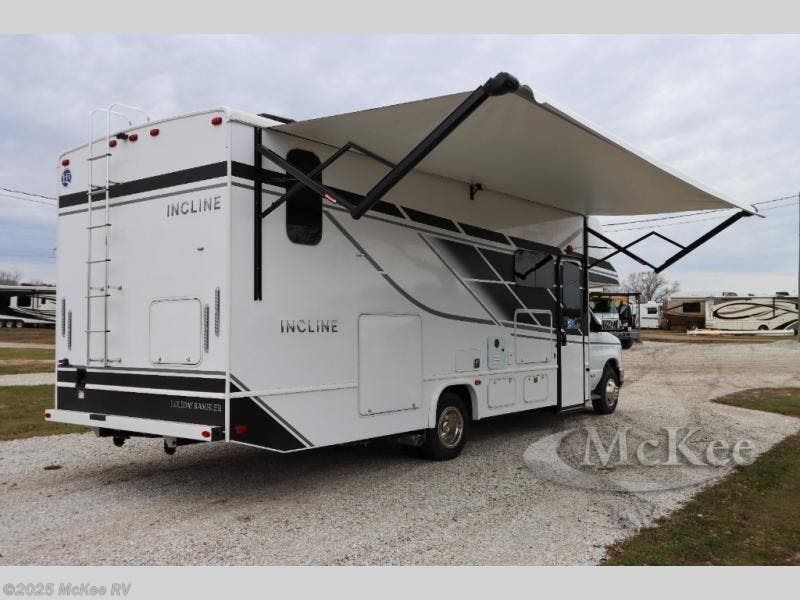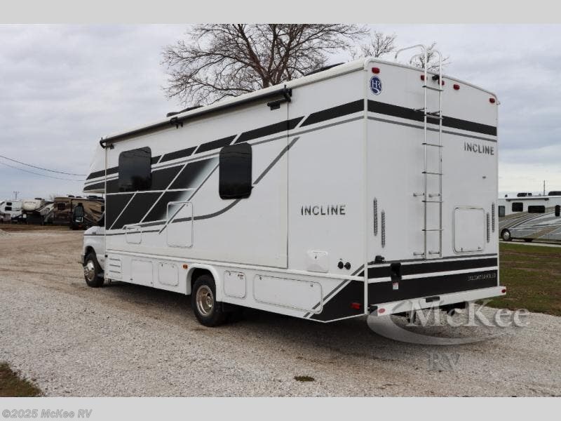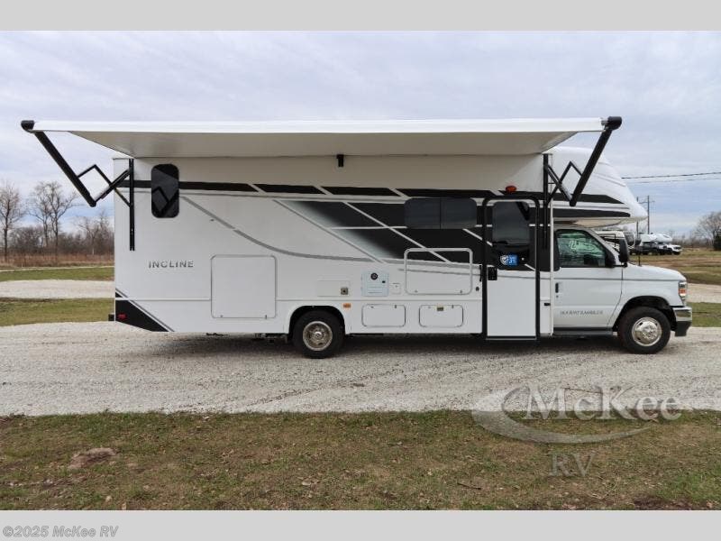 With any Incline Class C gas motorhome by Holiday Rambler, you will enjoy unrivaled performance, unbeatable storage, and luxury at every turn! You will love the journey just as much as the destination with reclining back and swivel captain's chairs and side view cameras, plus there is a Ford 7.3L V8 engine for power you can feel. Each model features painted steel frame construction with a Powerlock System ll that interlocks the walls to the roof for added durability, along with Vacu-Bond aluminum framed sidewalls, roof, and floor. Outside, you'll find automatic hydraulic leveling jacks, patio lighting, slam latch luggage door handles, and a Winegard Air 360+ that will allow you to stay connected as you travel. Head inside to find Surf-X countertops, slide out fascia with coordinating interior wood color, hidden hinge cabinet doors, kitchen backsplash, and many more comforts!