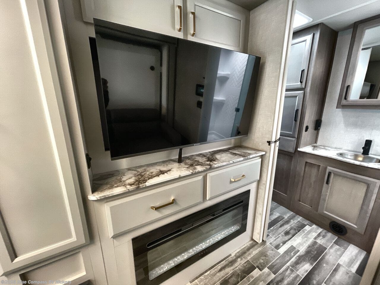 Pack your bags and head off on new adventures in this spacious coach! You will love gathering around the U-shaped dinette for a game or a meal, and the full-wall slide provides ample space to move around. An overhead bunk provides sleeping space for little ones or to be used as extra storage space. Since there is a queen Murphy bed, you will enjoy versatile seating and sleeping space, and the full rear bath will allow you to freshen up each day without having to use the camp's facilities. This model also includes a three burner range/convection microwave combo to cook meals on plus an exterior kitchen with a mini fridge, pull-out griddle, and storage when the weather is nice!