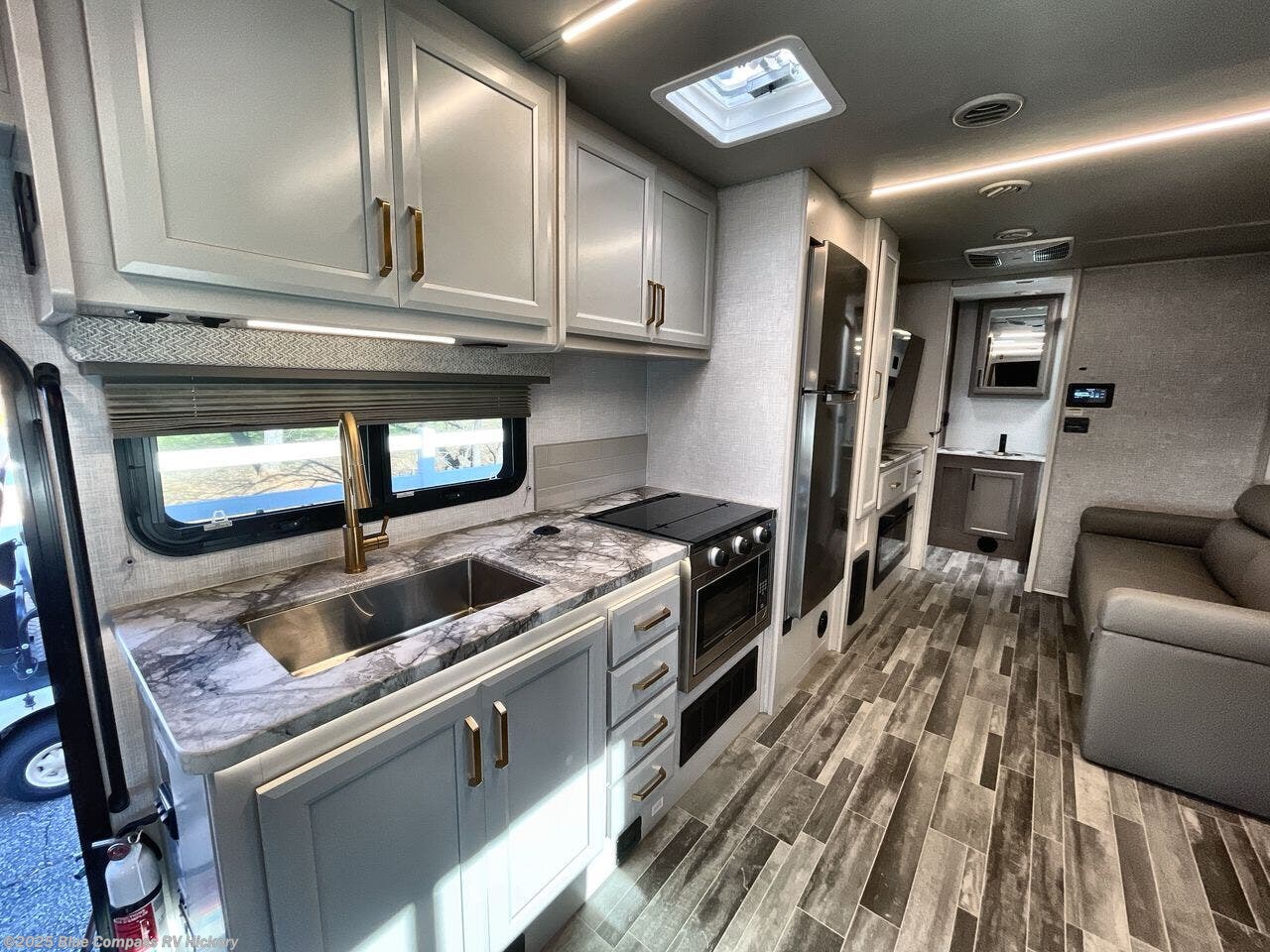With any Incline Class C gas motorhome by Holiday Rambler, you will enjoy unrivaled performance, unbeatable storage, and luxury at every turn! You will love the journey just as much as the destination with reclining back and swivel captain's chairs and side view cameras, plus there is a Ford 7.3L V8 engine for power you can feel. Each model features painted steel frame construction with a Powerlock System ll that interlocks the walls to the roof for added durability, along with Vacu-Bond aluminum framed sidewalls, roof, and floor. Outside, you'll find automatic hydraulic leveling jacks, patio lighting, slam latch luggage door handles, and a Winegard Air 360+ that will allow you to stay connected as you travel. Head inside to find Surf-X countertops, slide out fascia with coordinating interior wood color, hidden hinge cabinet doors, kitchen backsplash, and many more comforts!