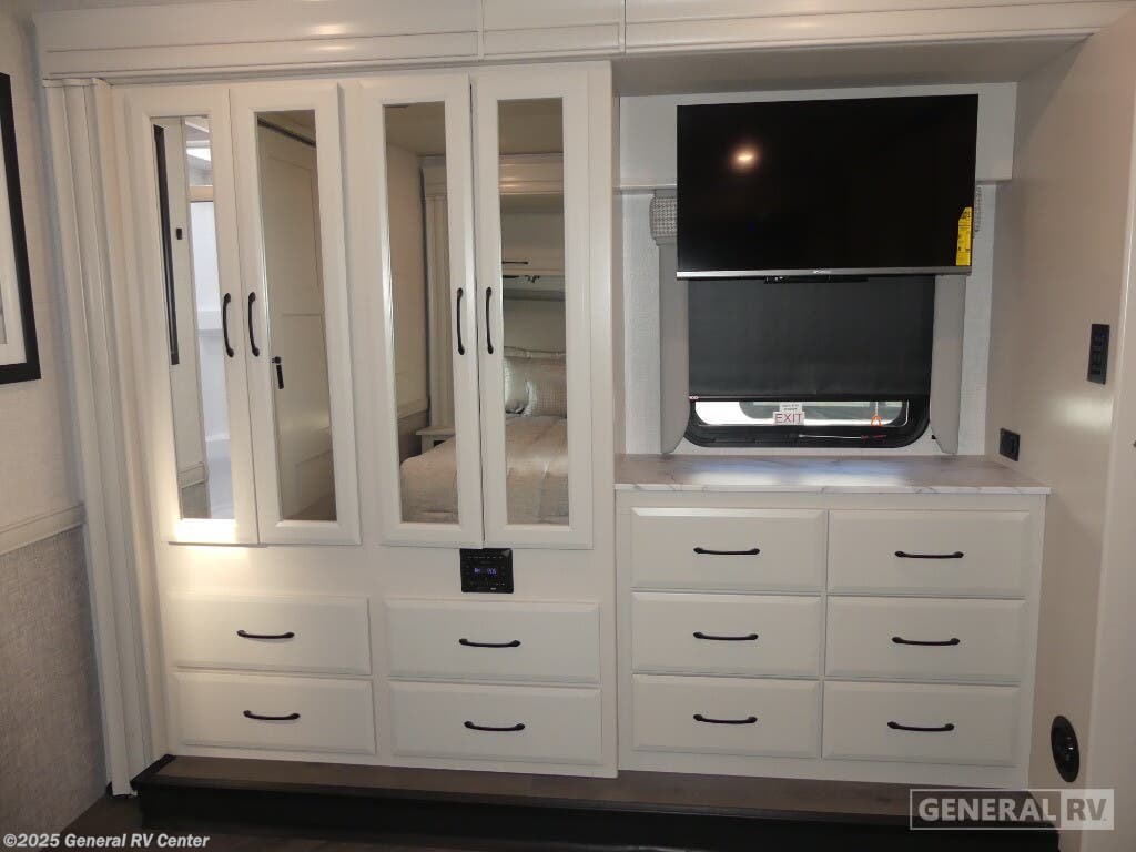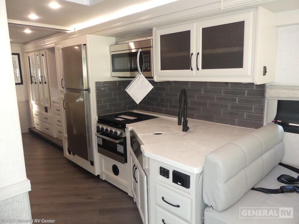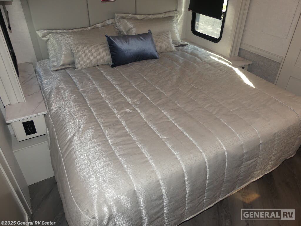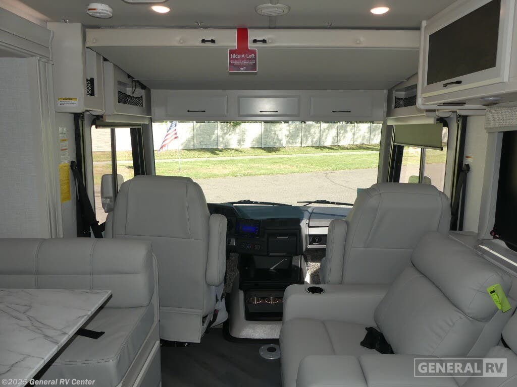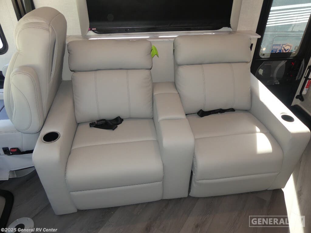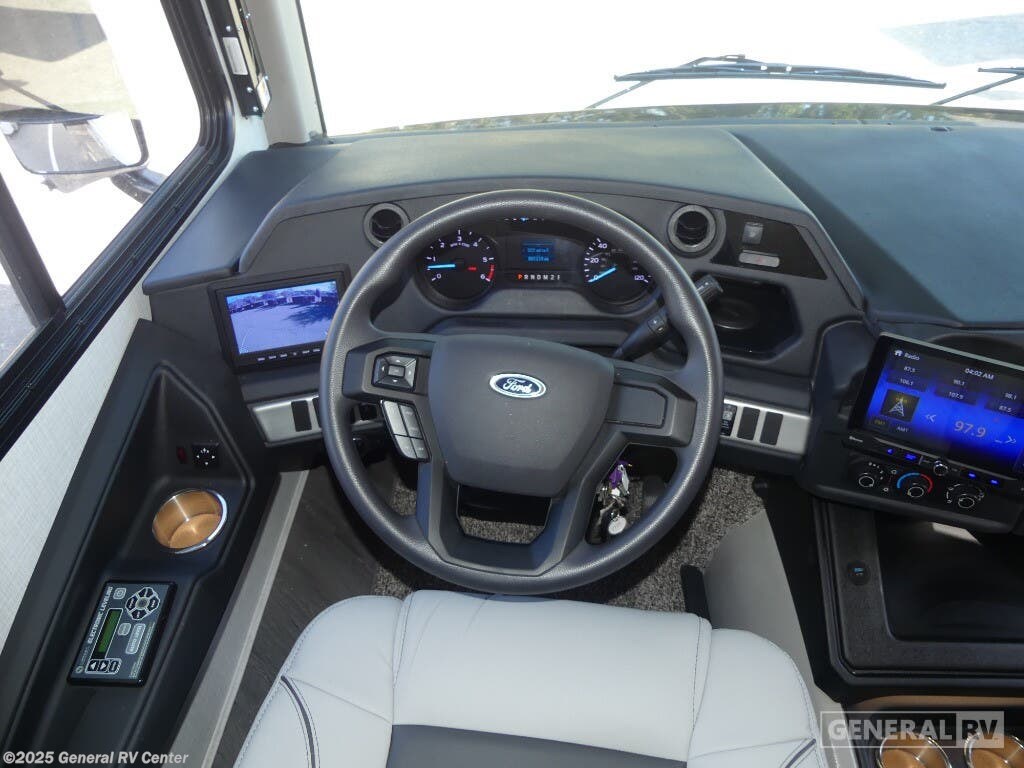 Experience the open road like never before with the 2025 Holiday Rambler Invicta 33HB. This magnificent motorhome combines luxury and functionality, making it the perfect choice for families and adventurers alike. With a spacious interior that comfortably sleeps up to eight, this RV offers a serene retreat with a king-sized Serenity Series bed and a cozy queen drop-down bed. The inviting front living area is complemented by a dream dinette and a jackknife sofa, ideal for relaxing or entertaining guests. The center kitchen boasts a full-size refrigerator, convection cooking, and a three-burner cooktop, ensuring you can prepare meals with ease while on your travels. The Invicta 33HB is thoughtfully designed with convenience in mind. The center bedroom and rear/center bath layout provide privacy and comfort, featuring ample storage with wardrobes and overhead compartments. The 14 ft. powered retractable awning creates a perfect outdoor space, allowing you to enjoy the scenery in comfort. Built on the robust Ford F53 chassis, this motorhome is powered by a 335-horsepower engine, offering a smooth and reliable ride. With a generous 80-gallon fuel capacity and an impressive 8,000 lbs towing capacity, your adventures are boundless. Visit your nearest General RV dealership to explore this exceptional motorhome and embark on your next journey in style.