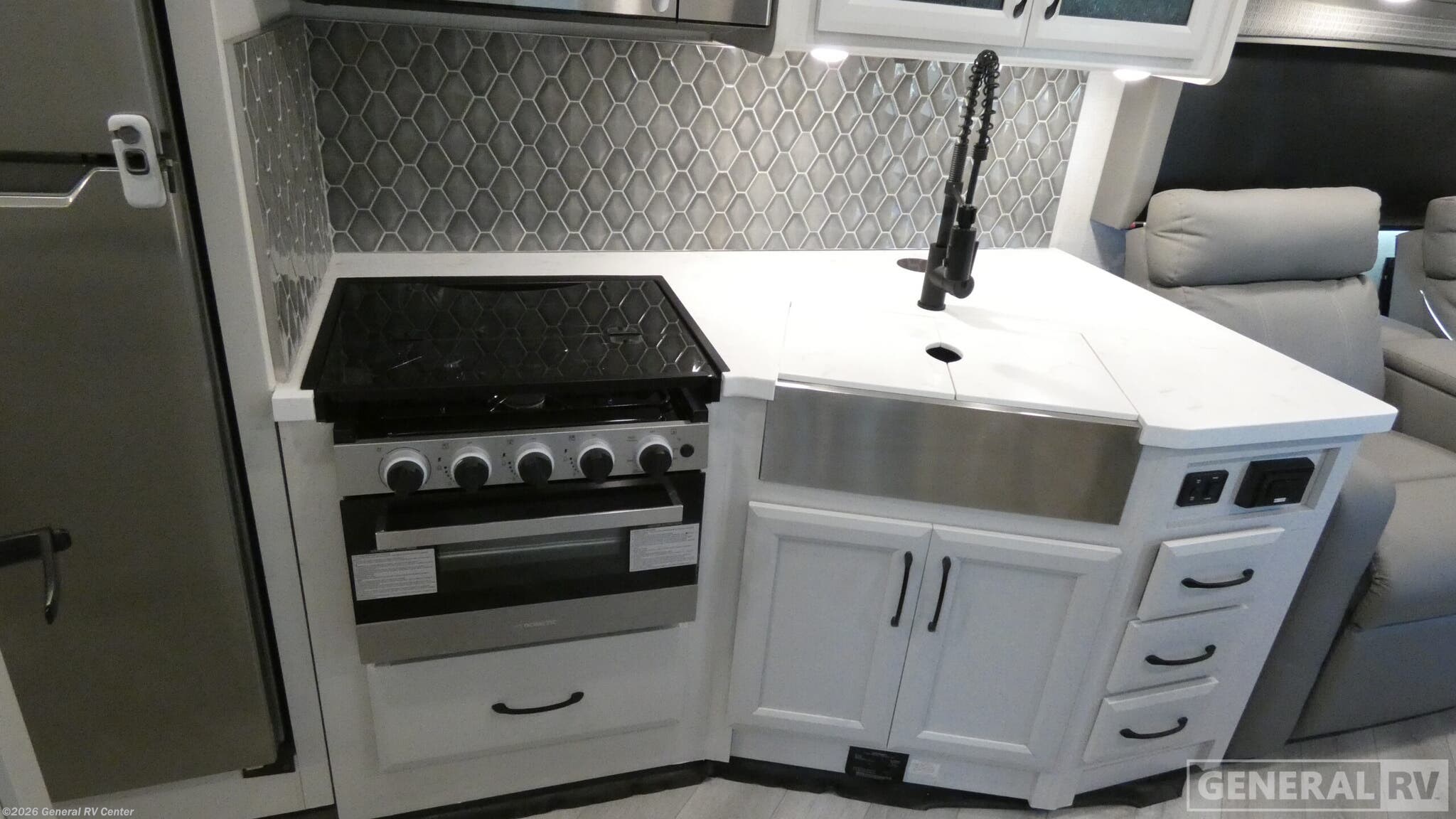 Elevate your travel experience with the 2025 Holiday Rambler Invicta 36Y, a Class A gas motorhome designed for adventure-seekers who refuse to compromise on comfort. Built on a robust Ford F-53 chassis powered by a 335 horsepower 7.3L V8 engine, this impressive 39-foot coach conquers any road with confidence. The innovative floorplan features the exclusive Kid Kave™ in the rear, complete with a jackknife sofa, balcony loft, swing LED TV, and its own half bath—perfect for traveling with family or friends. The Invicta 36Y delivers luxury amenities throughout, including a private bedroom with a Serenity Series queen bed slide, dual wardrobes, and an LED TV. The full kitchen boasts a three-burner cooktop, stainless steel convection microwave, and residential refrigerator, while the mid-ship full bath features a spacious shower with glass door. Outdoor adventures are enhanced with an exterior kitchenette featuring a mini-refrigerator and pull-out flattop griddle. Whether relaxing inside on the L-shaped dinette or enjoying the exterior entertainment center under the 12' electric awning, the Invicta 36Y delivers an exceptional experience. Visit your nearest General RV dealership to explore this impressive motorhome in person.