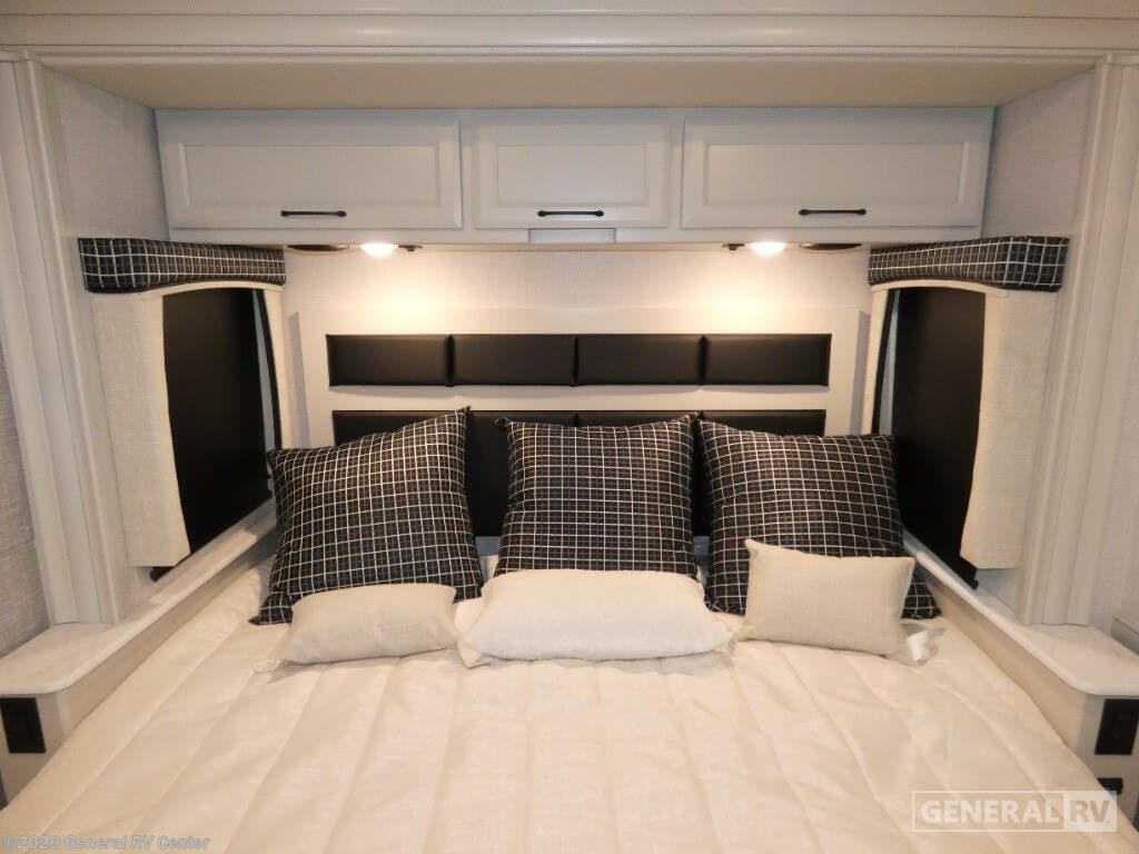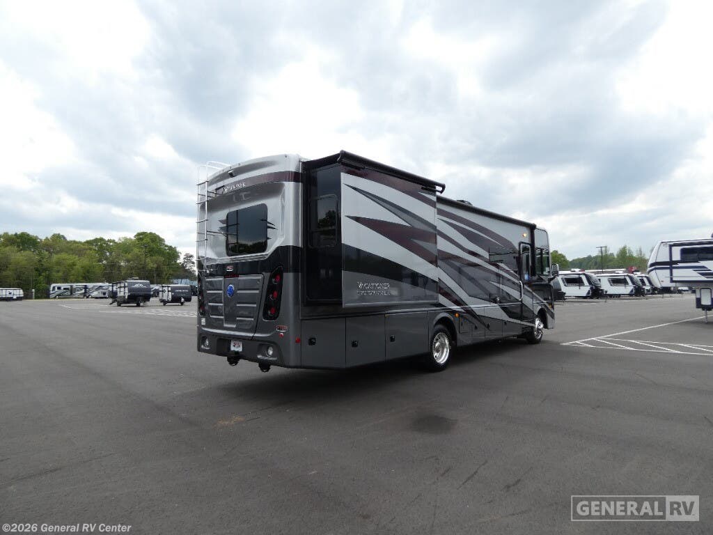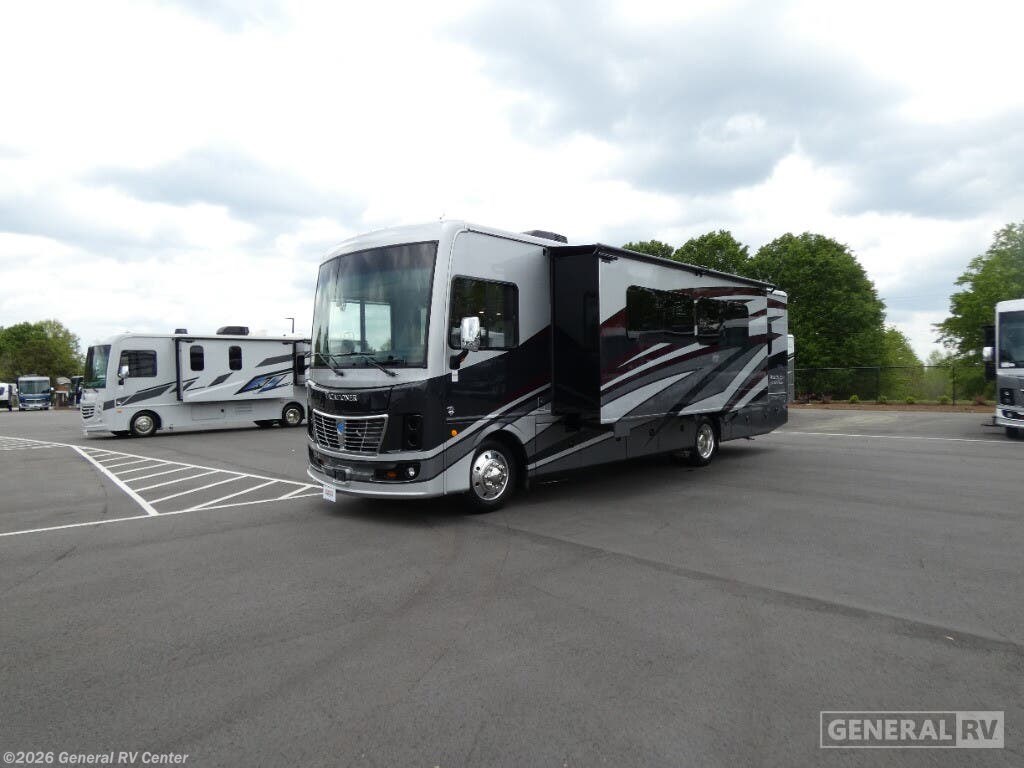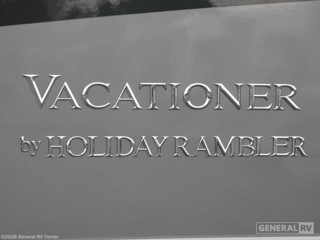 Step into luxury with the 2025 Holiday Rambler Vacationer 33C, a Class A gas motorhome designed for comfortable travel and extended stays. This 34-foot double slide out coach features an open, spacious layout with all the amenities of home. In the main living area, you'll find a comfortable Rest EZ booth dinette and jack-knife sofa, perfect for relaxing or entertaining, complemented by a cozy fireplace with an LED TV. The well-appointed kitchen boasts a three-burner cooktop and a stainless steel residential refrigerator, making meal preparation a breeze while on the road. The Vacationer 33C offers a spacious full bathroom with a seated shower, skylight, and medicine cabinet with mirror for added convenience. At the end of the day, retire to the private rear bedroom featuring a luxurious Serenity Series king bed slide out and your own LED TV. For additional sleeping space, the optional Hide-A-Loft drop-down over bunk accommodates guests with ease. Built on a Ford F53 chassis with a powerful 7.3L V8 engine delivering 335 horsepower, this motorhome combines performance with comfort. With its Powerlock System construction featuring interlocking floor, walls, and roof, plus premium gel exterior Vetrosina fiberglass skin, the Vacationer 33C promises durability and style for your next adventure. For more information on this exceptional Holiday Rambler motorhome, visit your nearest General RV dealership location.