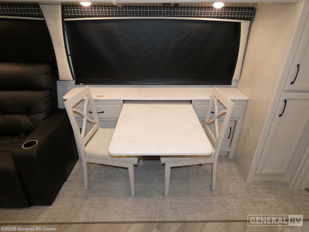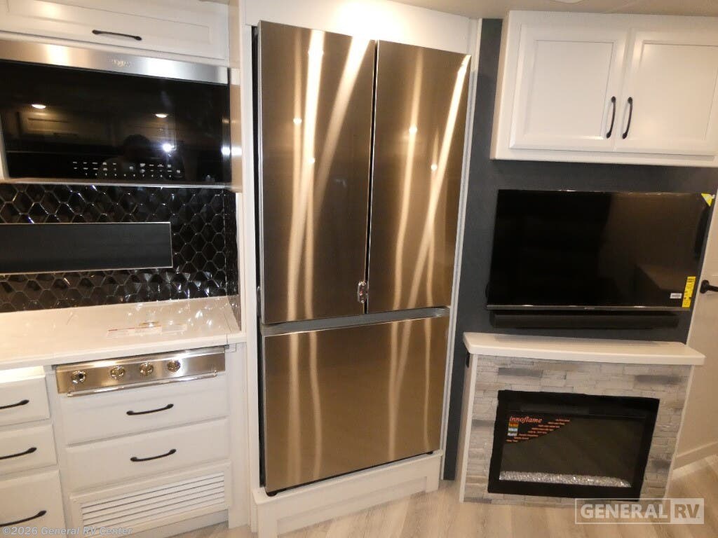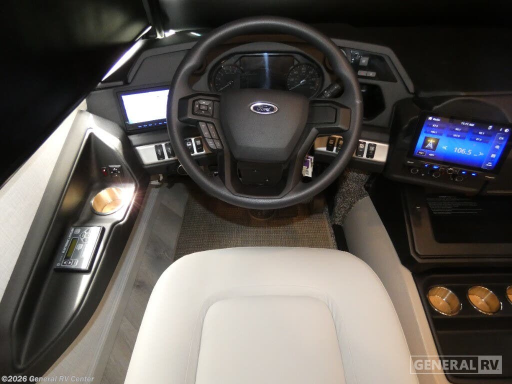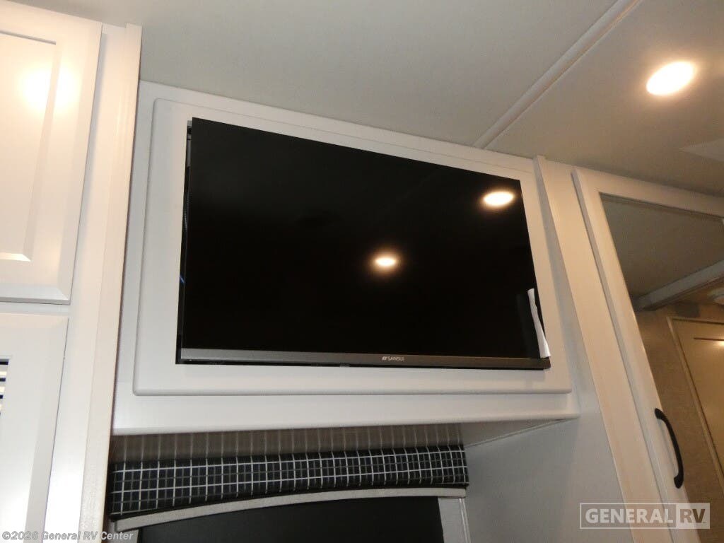 Step into luxury with the 2025 Holiday Rambler Vacationer 33C, a Class A gas motorhome designed for comfortable travel and extended stays. This 34-foot double slide out coach features an open, spacious layout with all the amenities of home. In the main living area, you'll find a comfortable Rest EZ booth dinette and jack-knife sofa, perfect for relaxing or entertaining, complemented by a cozy fireplace with an LED TV. The well-appointed kitchen boasts a three-burner cooktop and a stainless steel residential refrigerator, making meal preparation a breeze while on the road. The Vacationer 33C offers a spacious full bathroom with a seated shower, skylight, and medicine cabinet with mirror for added convenience. At the end of the day, retire to the private rear bedroom featuring a luxurious Serenity Series king bed slide out and your own LED TV. For additional sleeping space, the optional Hide-A-Loft drop-down over bunk accommodates guests with ease. Built on a Ford F53 chassis with a powerful 7.3L V8 engine delivering 335 horsepower, this motorhome combines performance with comfort. With its Powerlock System construction featuring interlocking floor, walls, and roof, plus premium gel exterior Vetrosina fiberglass skin, the Vacationer 33C promises durability and style for your next adventure. For more information on this exceptional Holiday Rambler motorhome, visit your nearest General RV dealership location.
