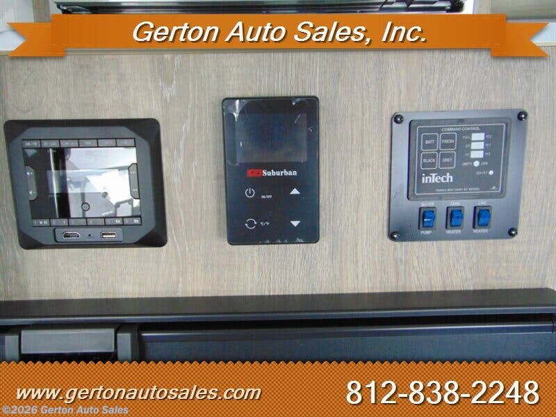 NEW 2025 inTech RV Sol Dusk Rover! Sol Dusk is unlike any other camper, featuring a massive 3-ply laminated glass panoramic front windshield. You won’t find a better view of the great outdoors in any other camper! inTech excels at maximizing interior space, making even compact areas feel expansive. Central to the Sol Dusk's design is its versatile bed/lounge area. This adaptable space can be effortlessly transformed: whether you’re in the mood for a relaxed lounge, need twin beds, or prefer to utilize the fillers for a luxurious 80”x80” oversize king bed. This coach is optioned with the Rover package, 10' power awning, Slide-out rear exterior kitchen with griddle and refrigerator, power tongue jack, Dual LP tanks, and the awesome Off-Grid Solar Lithium package. MSRP on this coach is $60473.00. UVW is 3960 pounds while GVW is 4800 pounds. See all photos of this and other fine RVs and vehicles at or call/text us at 812-838-2248 to set a time to see it in person. Tax, title, and $225.00 documentation fee extra.