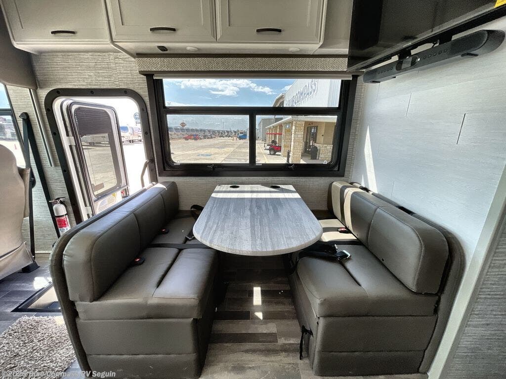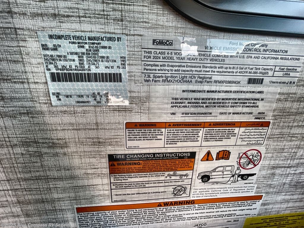 Travel to see new places and enjoy interior comforts as well as outdoor entertainment with this coach! After easily setting up the 23' electric awning you can relax and unwind while taking in the scenery or watching the the exterior LED HD Smart TV. The chef can utilize the outside kitchen or the full kitchen amenities inside such as a 10 cu. ft. refrigerator, the Furrion all-in-one cooktop and oven, plus a residential-size microwave. There is even a pop-up charging center. Enjoy privacy in the rear bedroom while you sleep on the walk-around queen bed, and add the TV option if you like. You will find seating in the main area on the Jayco-exclusive easy-operation legless dinette table and the jack-knife sofa, or choose the theater seating option. The cockpit table also gives you another surface to place your things while you sit in the driver and passenger seats that swivel. If you're needing additional sleeping space, just choose the drop-down overhead bunk option!