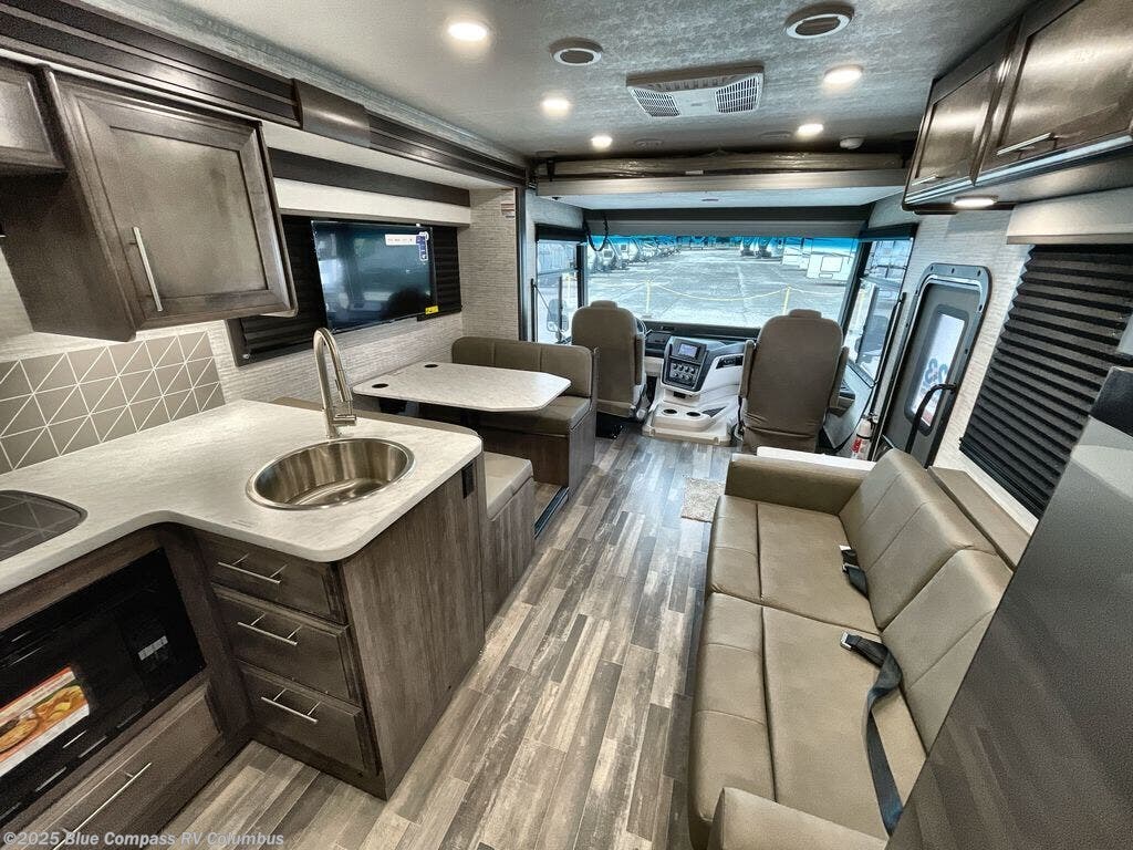 The Alante SE by Jayco provides an affordable choice for those who want to enter the Class A gas market! The durable construction includes StrongholdVBL roof, floor, and sidewalls plus bead-foam insulation and a one-piece, seamless fiberglass front cap. There are lockable pass-through storage compartments outside, along with an exterior utility center, a 4,000W generator, and solar prep for off-grid capabilities. The interior of this coach features hardwood cabinet doors and drawer fronts, decorative kitchen backsplash, and a 7' interior height for more space to stand up and move about. You will also appreciate the Customer Value Package that features the JRide handling package, Sony infotainment center, backup and side-view cameras, and more stand-out features!