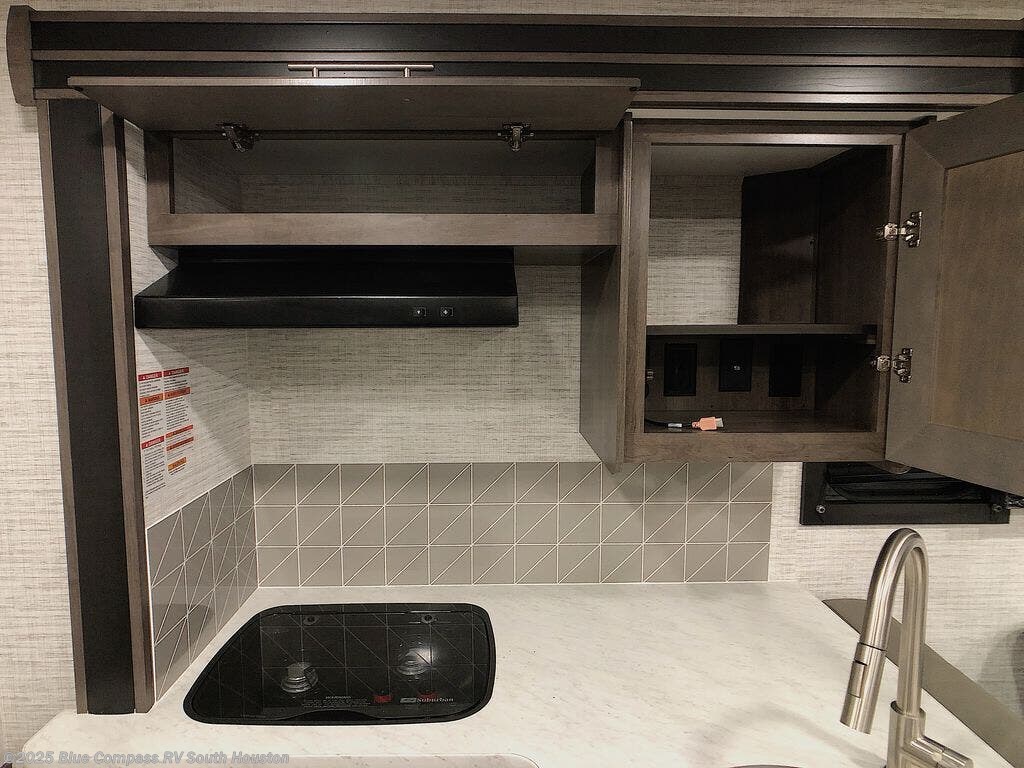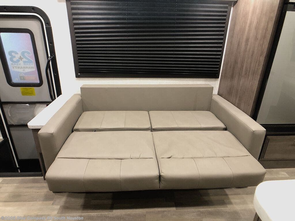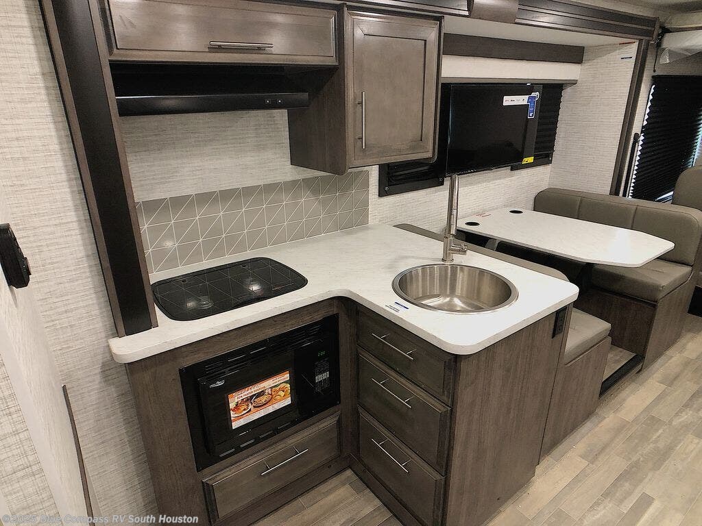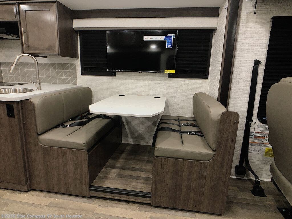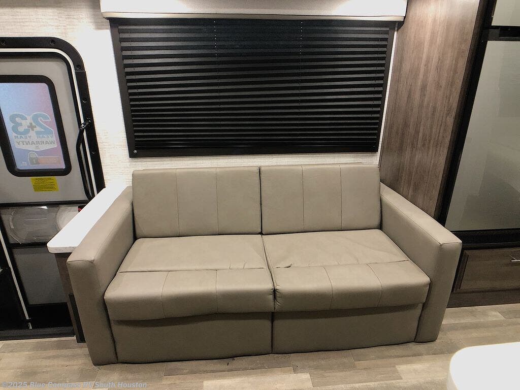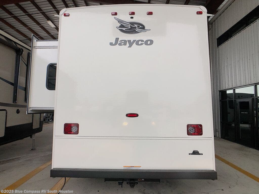 When you enjoy the drive as much as the destination, you know you made the correct choice for your adventures! The driver and passenger seats swivel to create more seating when you are parked, and the Jayco-exclusive, easy operation legless dinette table plus jack-knife sofa give everyone a place to relax and visit. You will also find sleeping space for five to six when you utilize the furniture and you choose the drop-down overhead bunk option. The rear corner bedroom gives you a king bed, two wardrobes, and a full bathroom just a few steps away. The kitchen offers full amenities including a two burner cooktop, a convection microwave, and a 10 cu. ft. 12V refrigerator. This unit also includes a 39" LED HD Smart TV in the living area to enjoy movie nights with popcorn!