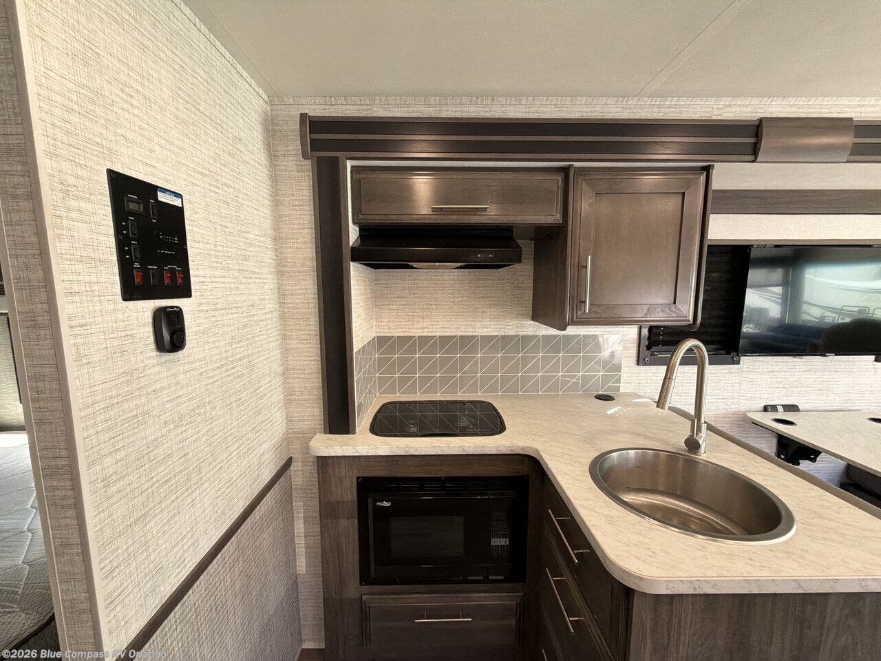 When you enjoy the drive as much as the destination, you know you made the correct choice for your adventures! The driver and passenger seats swivel to create more seating when you are parked, and the Jayco-exclusive, easy operation legless dinette table plus jack-knife sofa give everyone a place to relax and visit. You will also find sleeping space for five to six when you utilize the furniture and you choose the drop-down overhead bunk option. The rear corner bedroom gives you a king bed, two wardrobes, and a full bathroom just a few steps away. The kitchen offers full amenities including a two burner cooktop, a convection microwave, and a 10 cu. ft. 12V refrigerator. This unit also includes a 39" LED HD Smart TV in the living area to enjoy movie nights with popcorn!
