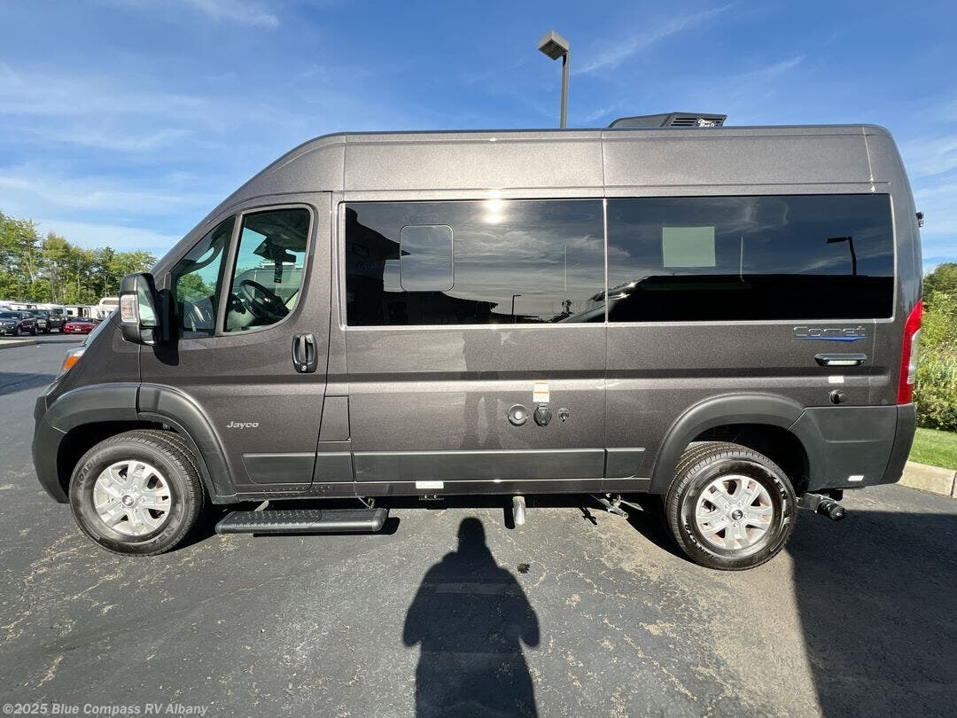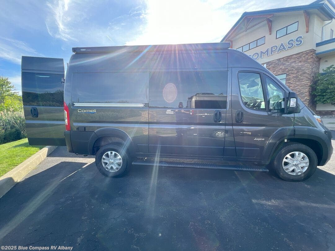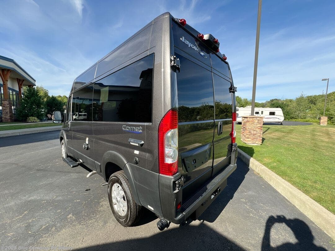 The small and nimble Comet Class B gas motorhome by Jayco is ready for adventure when you are! You'll appreciate the RAM ProMaster 1500 cargo van chassis for a strong and durable foundation, and the 17' 10" overall length means you can easily squeeze into parking spots even in the big city. There are added safety features for your peace of mind, like the LaneSense lane departure warning, drowsy driver detection, and forward collision warning with active braking. An Aqua-Hot GEN-1 hydronic water and heating system will provide hot water and heat when you need it, and the Winegard Connect 2.0 4G/Wi-Fi/digital TV antenna will help keep you connected as you're away from home. You'll be surprised by the interior comforts and functionality found in this compact camper van, including a convertible sofa/bed, residential vinyl flooring, swivel seats, and an adjustable table with multiple mounts to name a few!