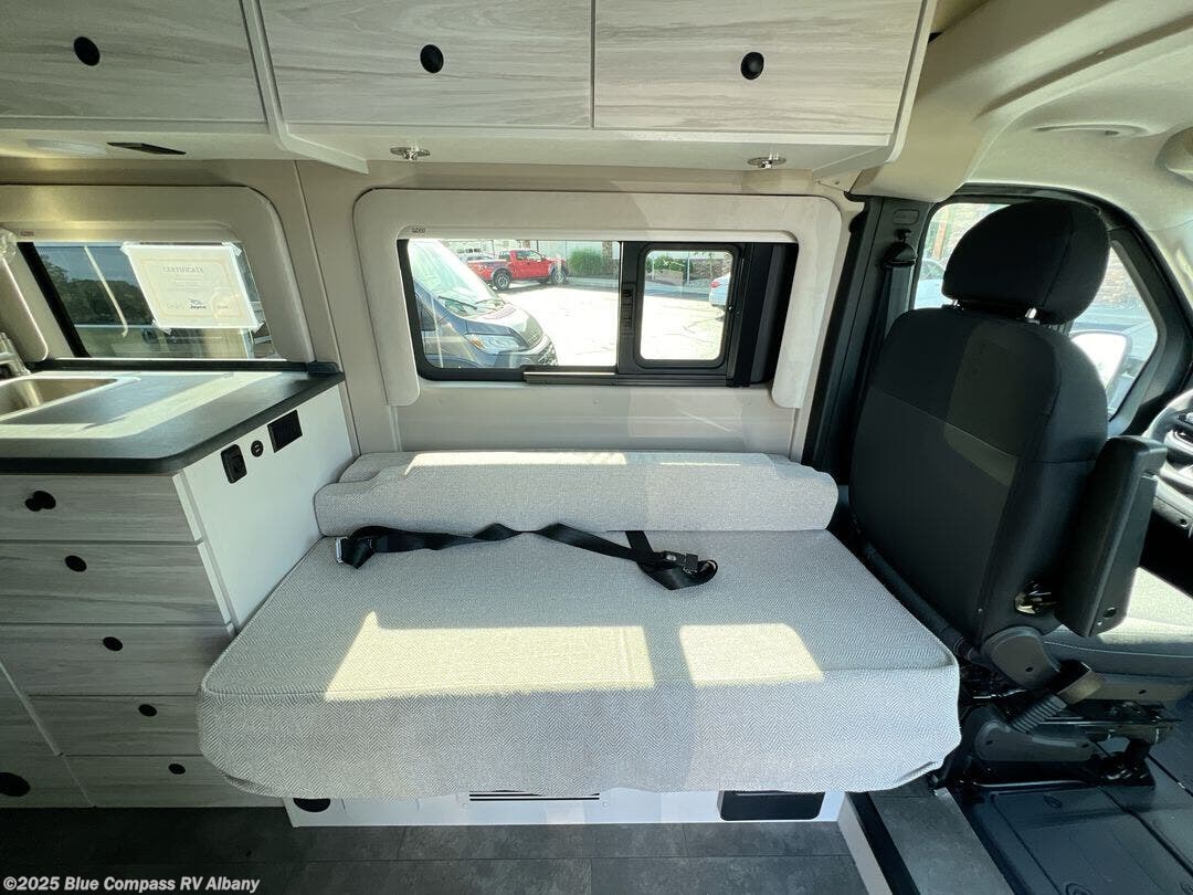 Enjoy every trip you take in this small, but mighty camper van! You will enjoy the drive just as much as the destination with a 10.1" Uconnect 5 NAV infotainment center and a ParkView rear backup camera. There is a 54" sofa to relax on once you park, and at night you can convert the sofa to a 54" x 72" bed. And the 27" bench seat is close by the entrance to provide a place to pull on your hiking boots. After you've worked up an appetite outdoors, you can prepare lunch on the portable induction cooktop, clean up with the stainless steel sink with a cover, and store leftovers in the 3 cu. ft. refrigerator/freezer. This model also includes a rear wet bath so you can freshen up before bed, and the bath wardrobe will let you keep your clothes and towels tidy!