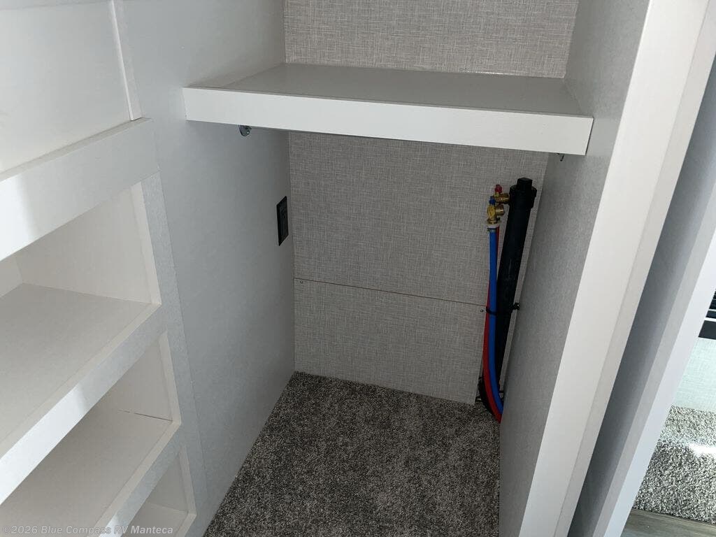 Triple slides for space, plenty of seating spaces, plus a spacious private bedroom make this fifth wheel one you won't want to pass up! You can freshen up each day in the full bath that includes a residential style glass shower door, a bathroom skylight, and a medicine cabinet to keep this space organized. Once you've cut up some fresh fruit at the kitchen island, whip up some eggs and bacon for breakfast, or just grab the cereal from the pantry. There is a spacious 16 cu. ft. 12V refrigerator, plus a hutch where you can store your own coffee machine. Relax on the tri-fold sofa, theater seat, or free-standing table before heading out for the day. The king bed slide out in the front private bedroom will be waiting for you when you return!