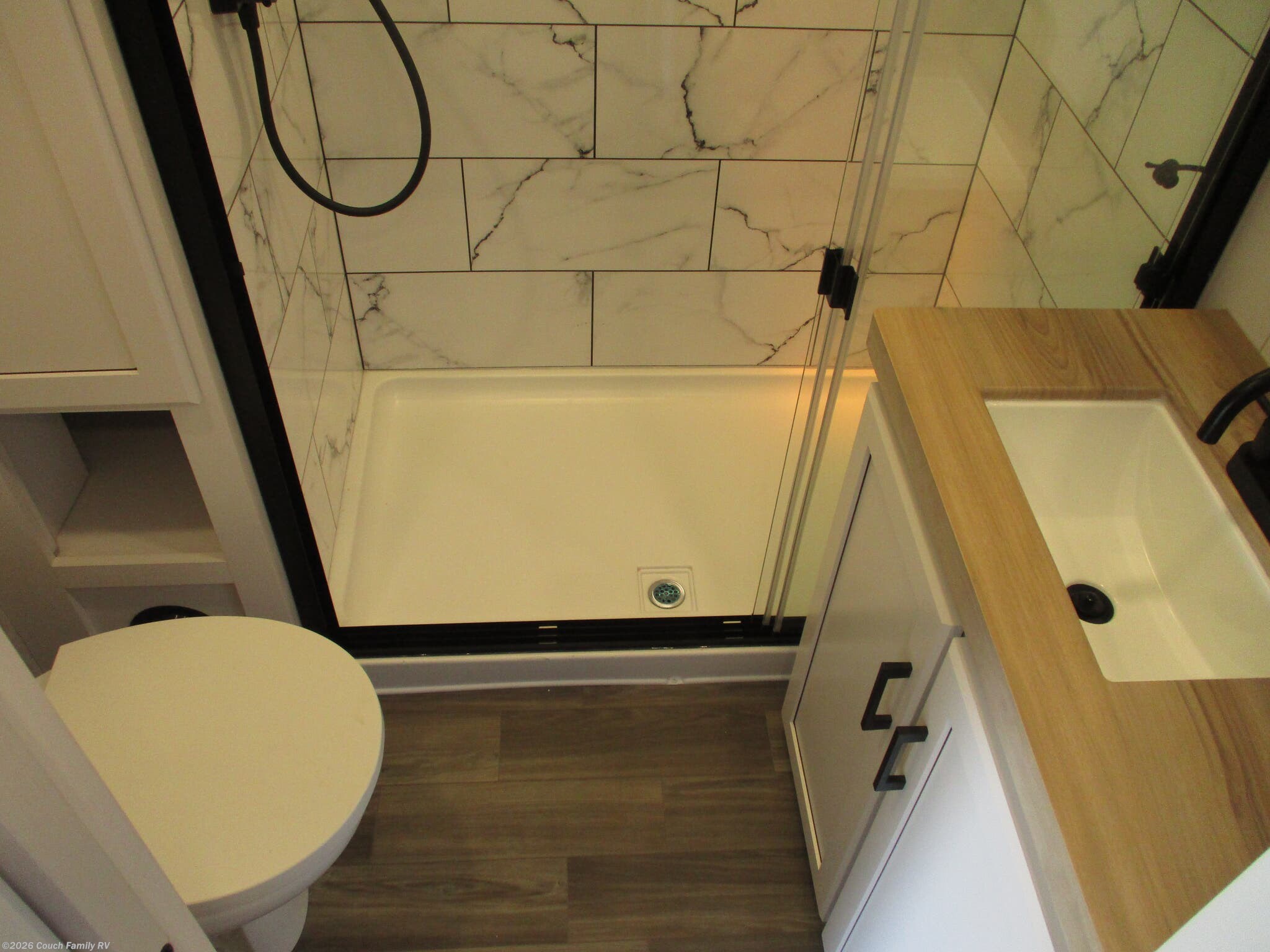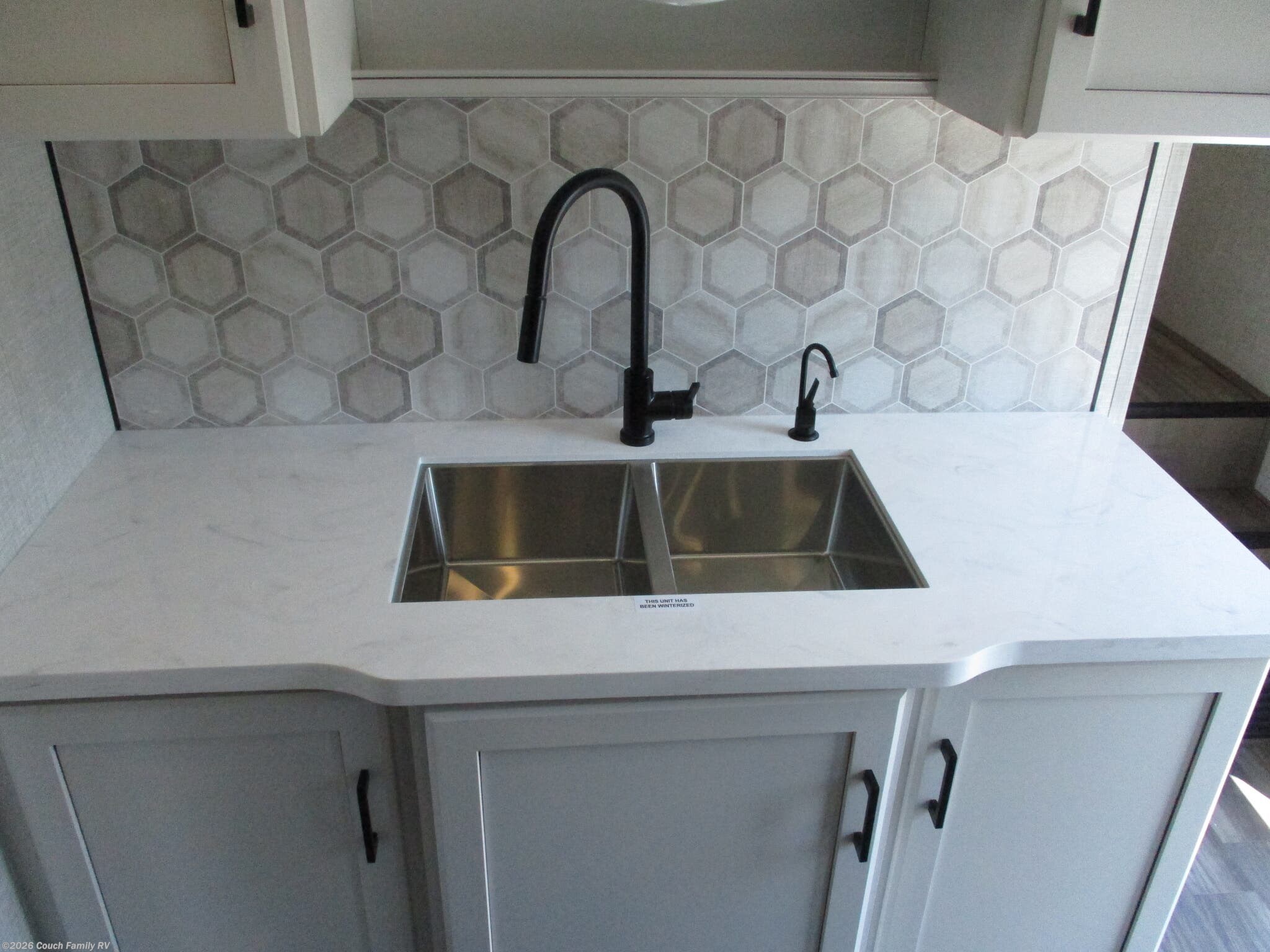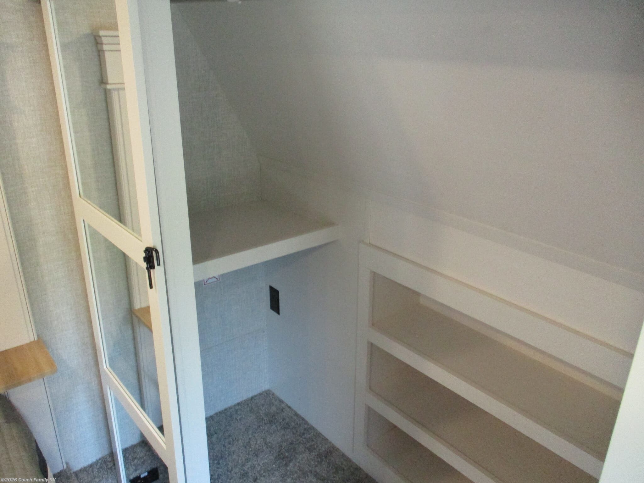This fifth wheel is loaded with modern amenities that elevate your travel experience. The interior includes a cozy fireplace, a king-size bed, and comfortable rocker recliners, offering premium comfort after a day of adventure. The spacious bathroom features a shower and toilet, complemented by a convenient medicine cabinet. Stay entertained with a surround sound system and multiple TV options, perfect for movie nights or catching up on your favorite shows.